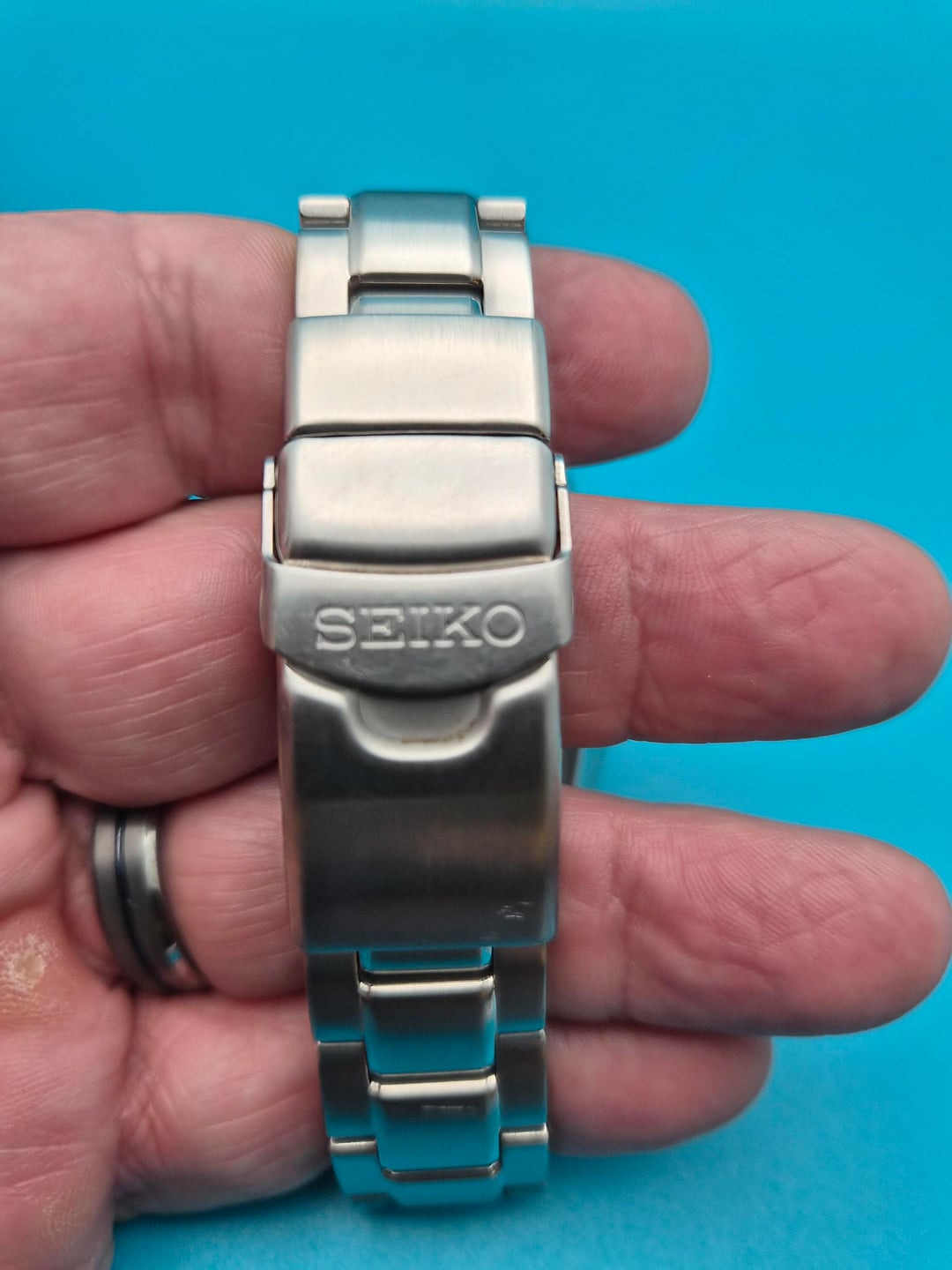 For sale: Seiko Prospex SFK003 Sumo Solar GMT Green Condition: Pre-owned with typical signs of wear consistent with normal use. Mark near the 10 and 35 on the bezel. Key Dimensions: Case Diameter: 45mm Case Thickness: 13.2mm Lug-to-Lug (L2L): 51.8mm Lug Width: 20mm Other Notable Features: Material: Stainless Steel Case & Bracelet Crystal: Curved Sapphire with Anti-Reflective Coating Movement: Caliber 5K65 Solar-Charged Quartz GMT Water Resistance: 200 meters Includes: Watch only, extra links. Price: $425 Payment: PayPal F&F, Venmo F&F, or Zelle accepted Shipping: Free shipping within CONUS Trades: Not accepting trades at this time Location: Fernandina Beach, Florida Thank you for viewing my listing!