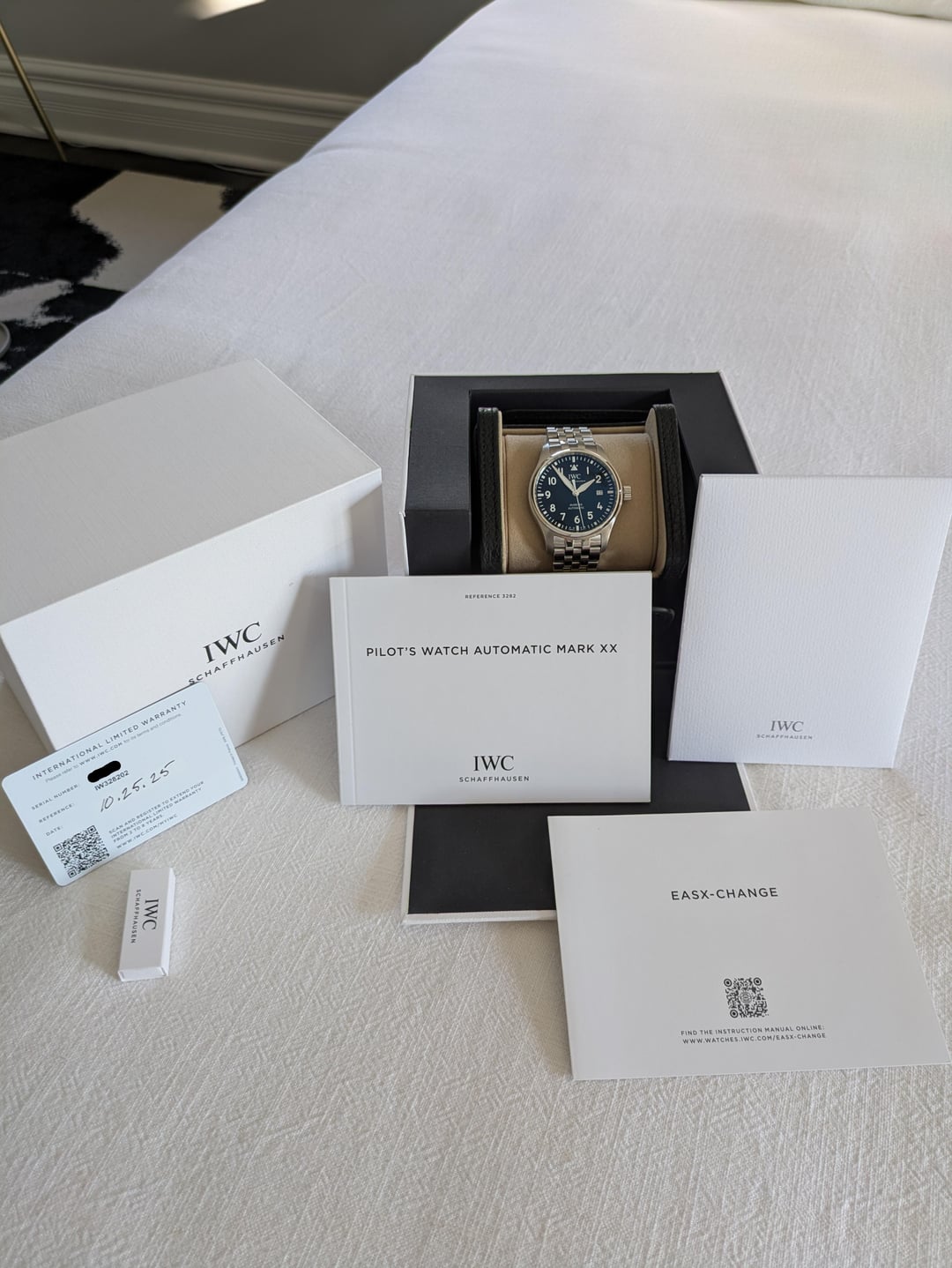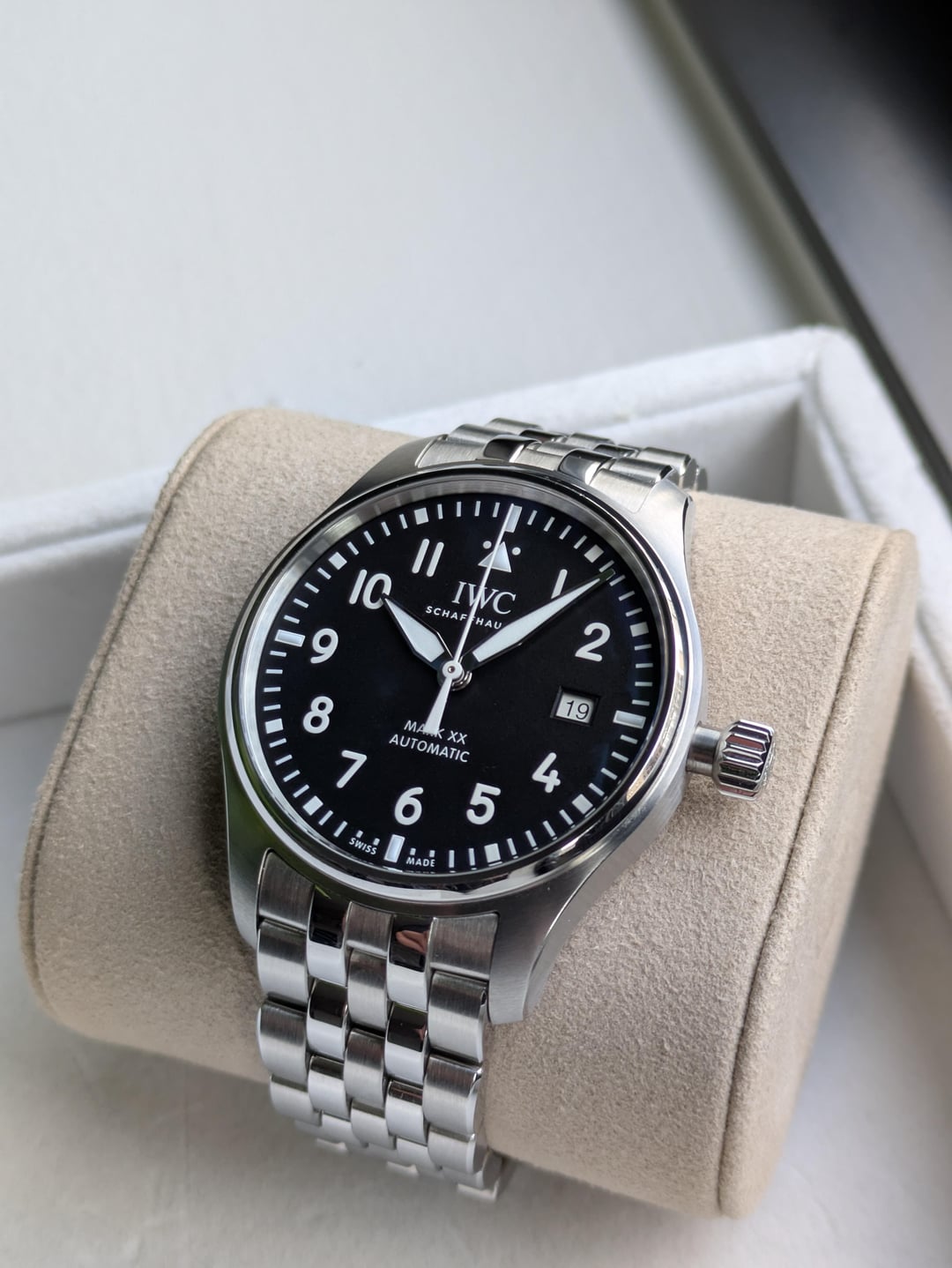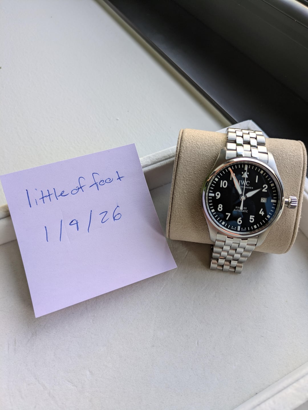 For sale is the IWC Mark XX in black with the stainless steel bracelet. I purchased this brand new from and AD back in October 2025, wore it less than 10 times, and it's been sitting in it's box ever since. The piece comes with box, papers, warrantee card, travel pouch (everything that was included in the original sale). Price is $5,350. I will ship anywhere in the continental US for $50. I am not looking for trades at this time.