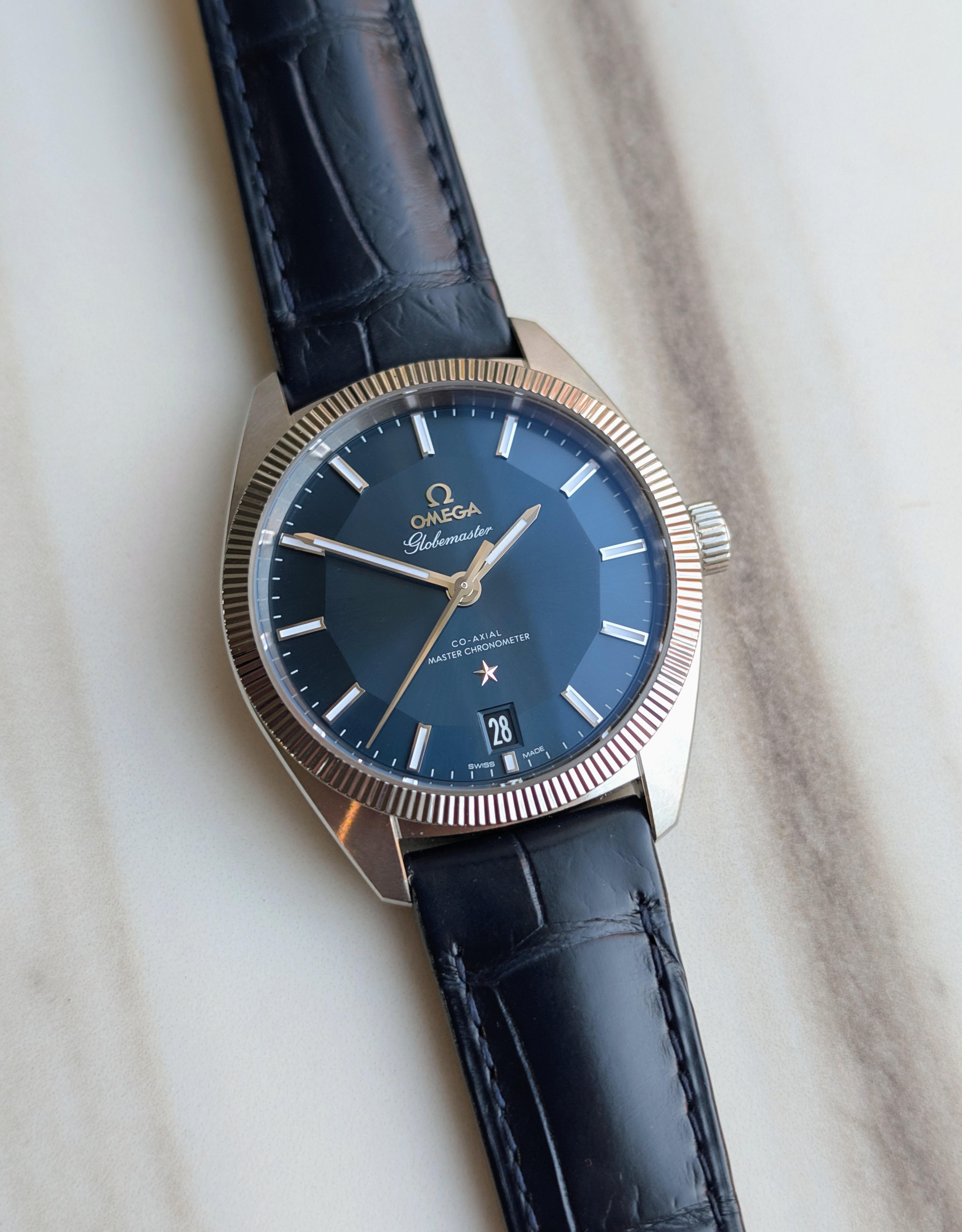 **Omega Constellation Globemaster** Modern Globemaster and features coin-edge bezel and classic pie-pan dial inspired by original Constellation models of the 1950s. 39mm stainless steel case on new factory leather strap with deployant buckle. Beautiful sun-brushed blue "Pie Pan" dial. Omega's Co-Axial Master Chronometer Caliber 8900 with silicon balance spring and co-axial escapement. Comes with box and papers dated 2017. Reference 130.33.39.21.03.001 More pics: [https://imgur.com/a/5PSadT4](https://imgur.com/a/5PSadT4) $4,400 plus shipping 🛫 Watches shipped FedEx fully insured. Local pickup available in Los Angeles area 🤝 💬Positive feedback from hundreds of successful transactions across the watch community, including WUS, Chrono24, eBay, Facebook, and Reddit. I’m always happy to connect by phone or video call to answer questions or verify details. 💸 Zelle, Venmo and wire accepted. ⭐150+ five-star reviews on Chrono24 — buy with confidence.⭐ ⌚I have a wide range of exceptional watches available, with new pieces added every week.⌚