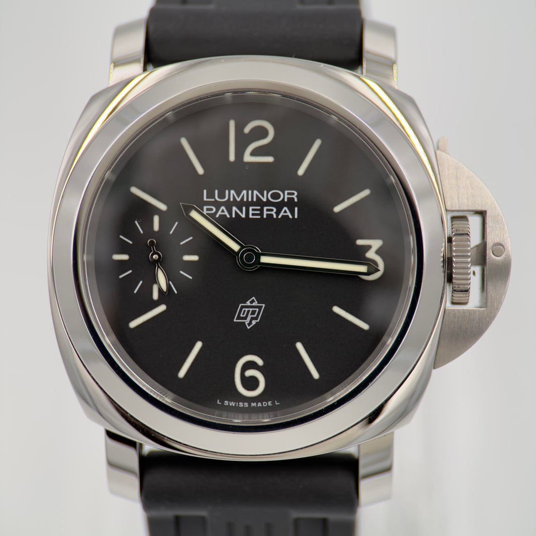 2023 Panerai Luminor PAM01084 – Full Triple Box Set – Excellent Condition Offered for sale is a 2023 Panerai Luminor PAM01084, a modern and highly desirable Luminor Base Logo featuring Panerai’s iconic military-inspired design and robust in-house movement. This watch is in excellent condition and comes as a complete triple-box set, making it a strong addition for both collectors and daily wear enthusiasts. Watch Details • Reference: PAM01084 • Model: Panerai Luminor Base Logo • Year: 2023 • Case Size: 44mm • Case Material: Stainless Steel • Dial: Black sandwich dial with OP (Officine Panerai) logo at 6 o’clock • Crystal: Sapphire • Movement: Panerai In-House Caliber P.6000 • Power Reserve: 3 Days (72 hours) • Winding: Manual • Water Resistance: 100 meters (10 BAR) • Caseback: Solid steel Included in the Sale • Outer shipping box • Outer Panerai box • Inner presentation box • Original Panerai papers / warranty card • Original OEM Panerai strap • Two aftermarket straps (great for versatility and daily wear) • Panerai crown guard tool • Complete full set as shown Why the PAM01084 The PAM01084 is one of the best modern entry points into the Panerai lineup. The 44mm Luminor case, iconic crown-guard bridge, and clean logo dial stay true to Panerai’s heritage while offering modern reliability through the in-house P.6000 movement.