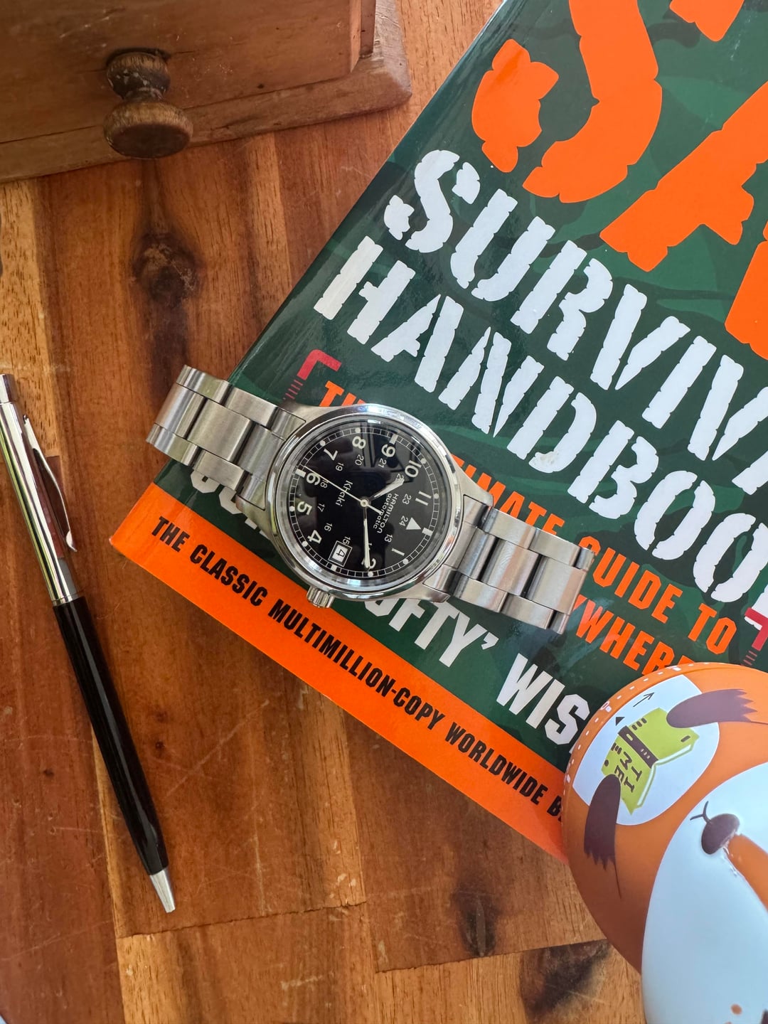 Hamilton Khaki 9721B Today for your consideration is the rare and much loved Hamilton Khaki 9721B. It’s often been said that the Khaki would be perfect at 36mm. Why doesn’t Hamilton make it at that size? Well, Hamilton quietly did just that in the 90’s. This small batch run features a beautiful gloss dial with railroad track minute markers. Unlike the present Hamilton Khaki, this dial is simple in its design. It is a great dress up or dress down GADA watch. I have it featured on an aftermarket oyster bracelet that helps elevate the look for those that love the Rolex Explorer aesthetic. Movement was serviced in 2024 locally in Colorado by Nu-way watches. It’s a 2824-2 movement running exceptionally well. Your mileage may vary slightly, but it runs great as you can see on the timegrapher. This is a hard one to let go of! Reason for sale: I review watches on my small, hobby YouTube channel. I bring them in to enjoy and review. Feel free to check out my channel Horology Project. Condition: Honest wear with use seen through the watch. This has been on a lot of adventures including hiking, rock climbing, camping. There are a couple of very light scratches on the mineral crystal that are hard to see in plain light. Presents exceptionally well for a watch over 20 years old. Wear is hard to capture and it is in overall great condition. Dimensions: 36mm x 44.7mm x 18mm and 11mm thick Price: $495 shipped and insured via USPS Priority. Payment method: Zelle or Wire. Location: Elizabeth, CO. I’m happy to meet up locally in the Elizabeth or Parker area.