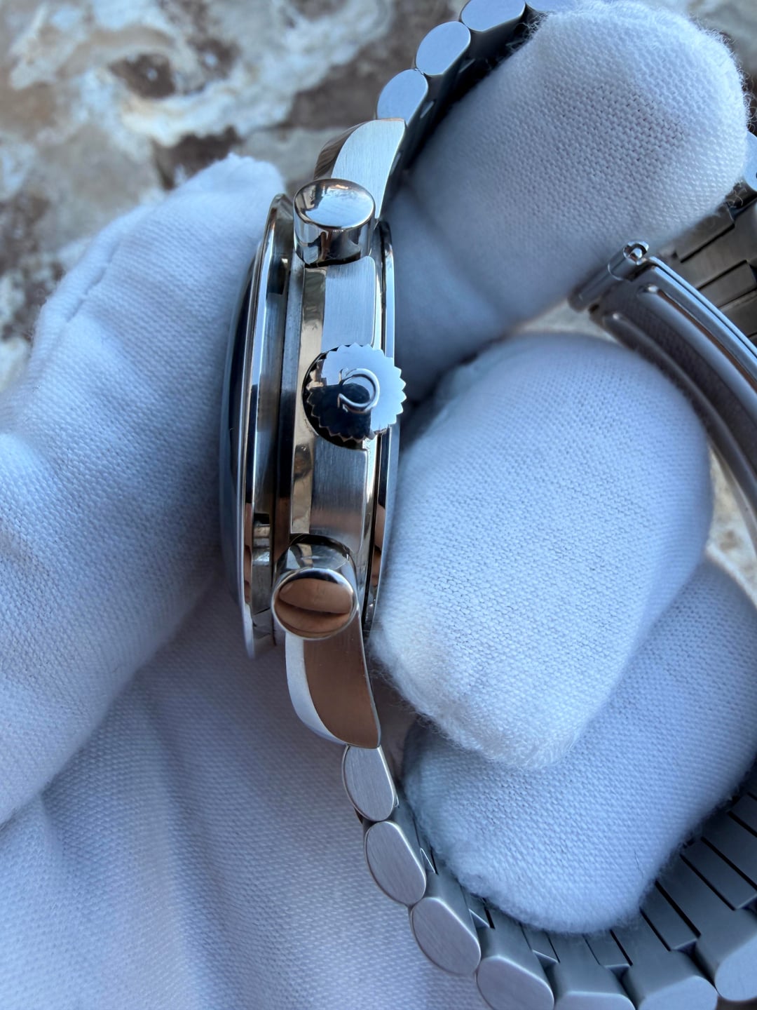 $2700 shipped CONUS. Awesome vintage speedy reduced with incredible tritium lume patina!! This reference had a few variations in caseback and bracelet. Excellent overall condition. Honest but light wear. Chrono works. 2 extra links included. Watch only. All sales final. No returns 🙂