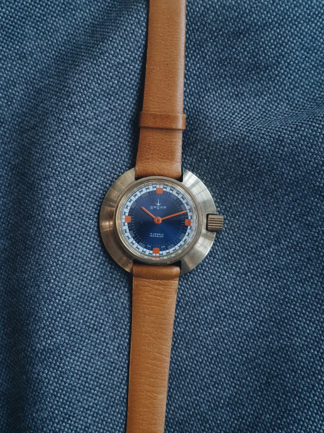 For sale is a vintage Spera, possibly from the 70s. It features a gold-plated case and it’s powered by a reliable Swiss manual wind movement. The watch also has a racing-themed blue dial that further adds to the vintage charm. **Details & More** **Condition:** Very good. Some usage marks on the case, but it still looks great for its age. Please see the pictures for full condition and clarity. **Case Size:** 30 x 27.7mm gold-plated case with a thickness of 9.1mm. **Movement:** Swiss manual wind movement in good working condition. Service history is unknown. **Price:** Asking $95. Please add $20 for worldwide shipping. Payment methods include Wise, ACH transfer, Revolut, Bitcoin (On-Chain or Lightning), or PayPal G&S for buyers with solid references. Add +7.5% for currency conversion fees on the latter. Portugal has suspended all local post shipments to the US, but I can still ship with UPS ($100). Established seller with over 220 transactions – buy with confidence! Make sure to follow me on Instagram (@daily.worn) to check out the newest additions. [Timestamp](https://imgur.com/a/uc124Pd)