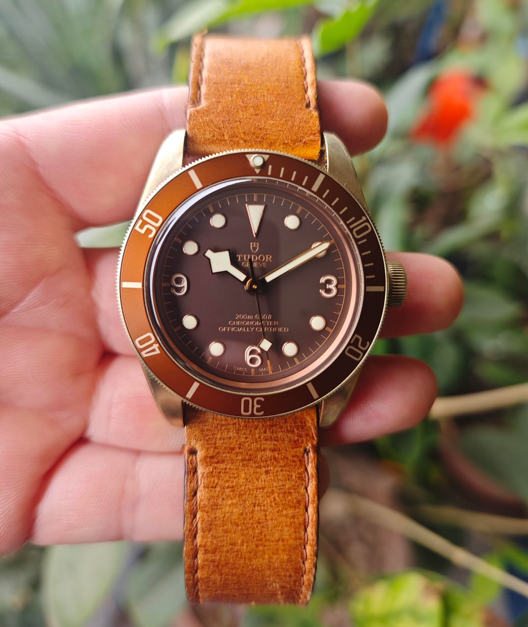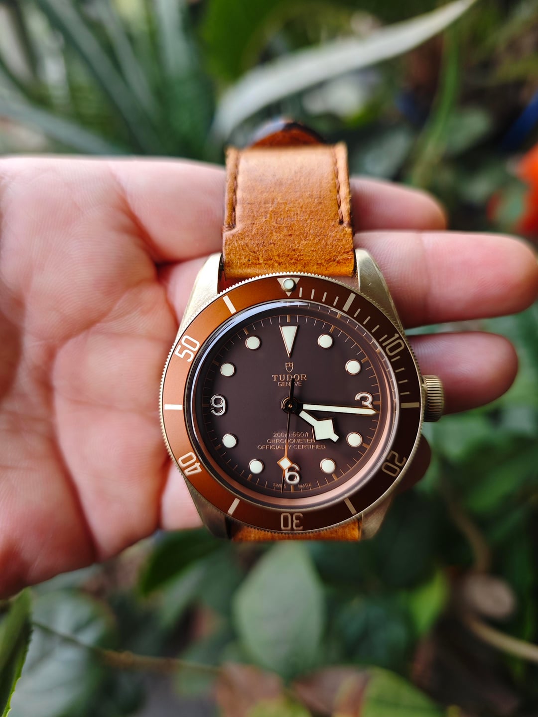 | Tudor Black Bay Bronze 43 mm Brown Dial Leather M79250BM box and paper. mushfi (418) |