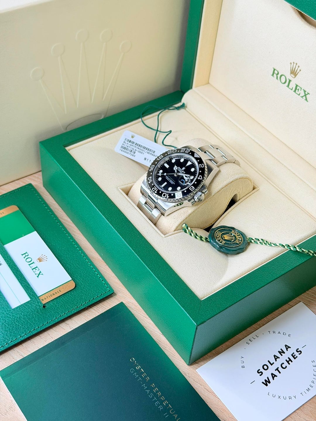 Selling this 40mm Rolex GMT Master II reference 116710LN / 116710 aka the Green Arrow. **This watch is in like-new condition**. **It comes as a full set**, including the Rolex green box, outer box, manuals, leather wallet, green hangtag, serialized hangtag, and warranty card dated 2019. The warranty card is undated, however, I have the original invoice and I also checked the serial number with Rolex to confirm it was sold in 2019. **Photos + Video:** * [Album](https://imgur.com/a/2019-green-arrow-jan2026-KcK2nfr) * [Timestamp](https://i.imgur.com/sruql0T.jpeg) * [More on my Instagram](https://www.instagram.com/solanawatches/) **Price is $14,000 delivered **in the US. **I’m a full-time watch dealer** with a private showroom located in Carlsbad, CA. Feel free to **Google “Solana Watches reviews” to see what others have to say about me** and my services. If you are local, don’t hesitate to reach out to schedule an appointment. **Feel free to contact me** via PM here so we can exchange numbers and get on the phone or do a video call. You can also [find me on Instagram @SolanaWatches](https://www.instagram.com/solanawatches/). _Private showroom located in San Diego, CA. Reach out to schedule an appointment._ _All my watches are guaranteed 100% authentic, and I will stand by their authenticity. _ _California buyers without a seller’s permit are subject to sales tax._