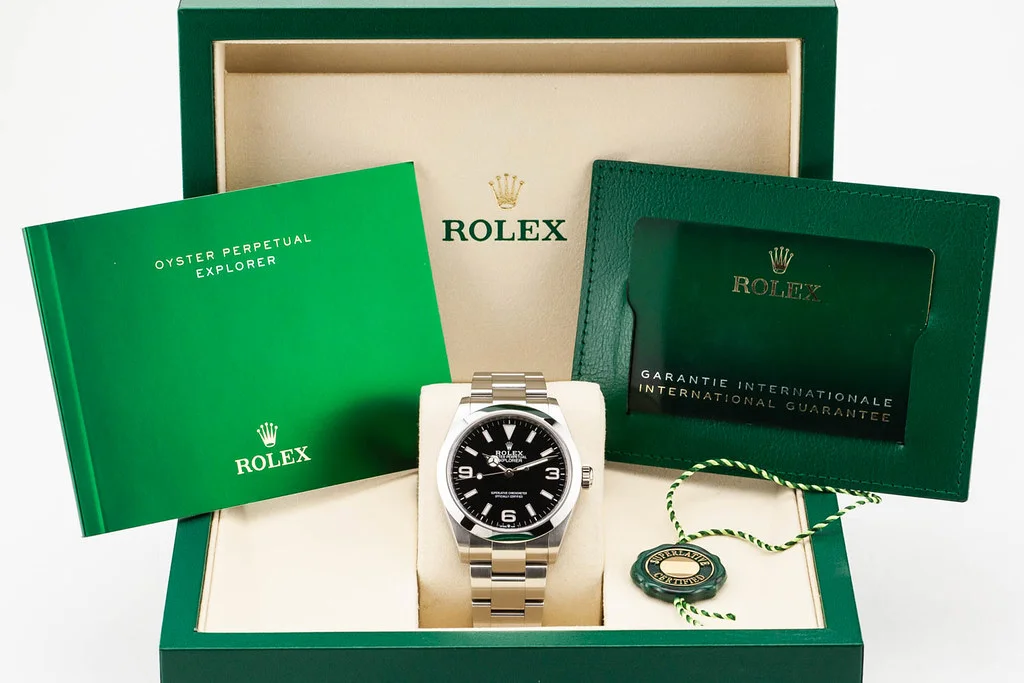Up for sale is an excellent condition Rolex Explorer I 40mm Black Dial, reference # 224270. It comes complete with all newly redesigned boxes, papers, booklets, hang tag, and Rolex Warranty Card dated August 2025.