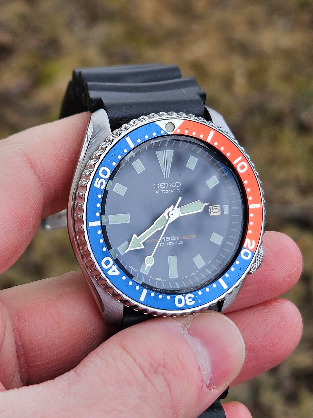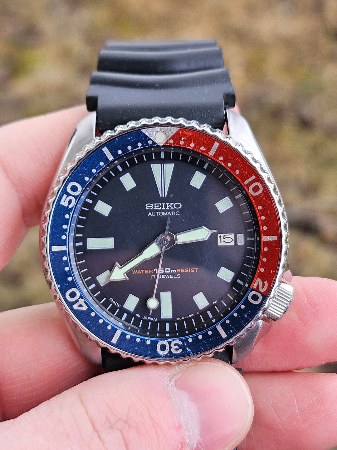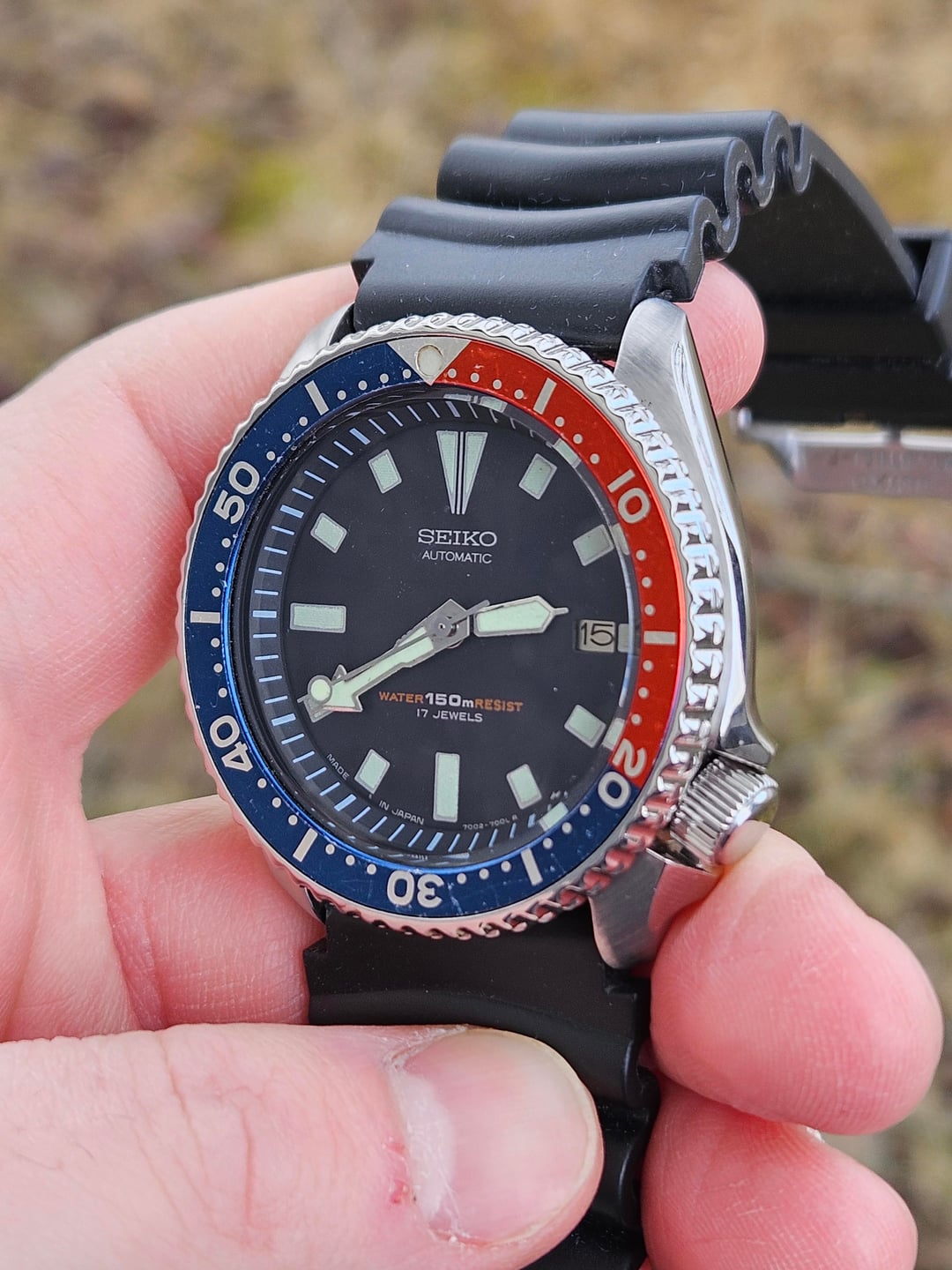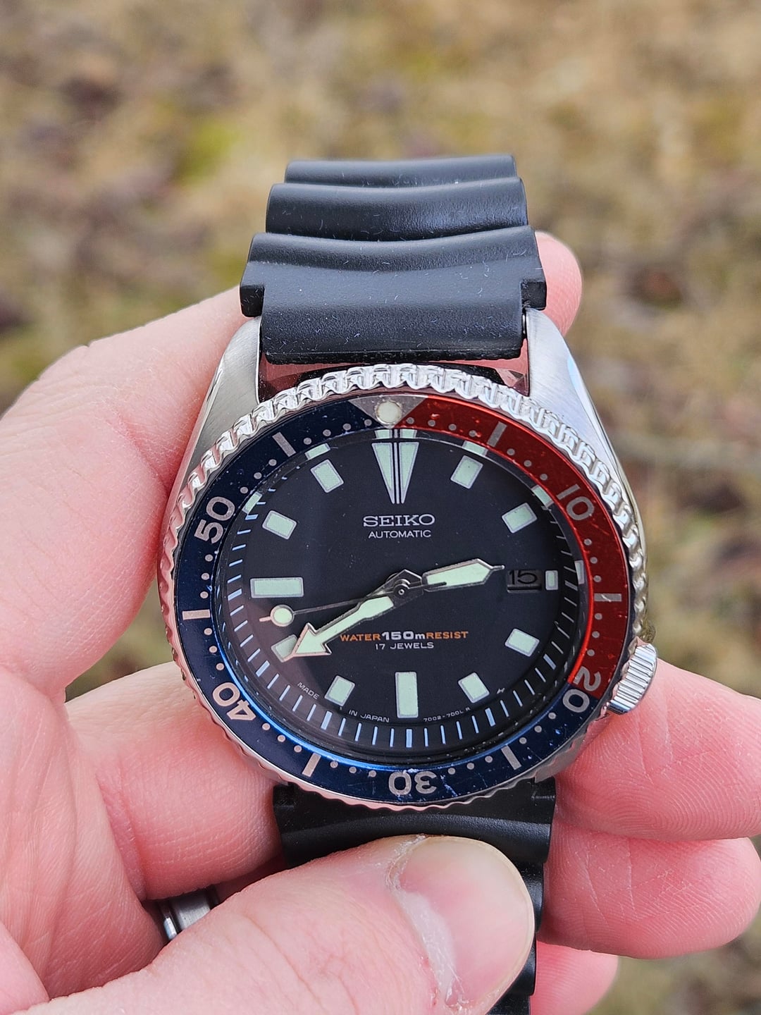 | Seiko 7002-700A Date Diver Scuba 150m Automatic Mens Watch Pepsi Bezel 1995 READ misterjimmyfl (2833) |