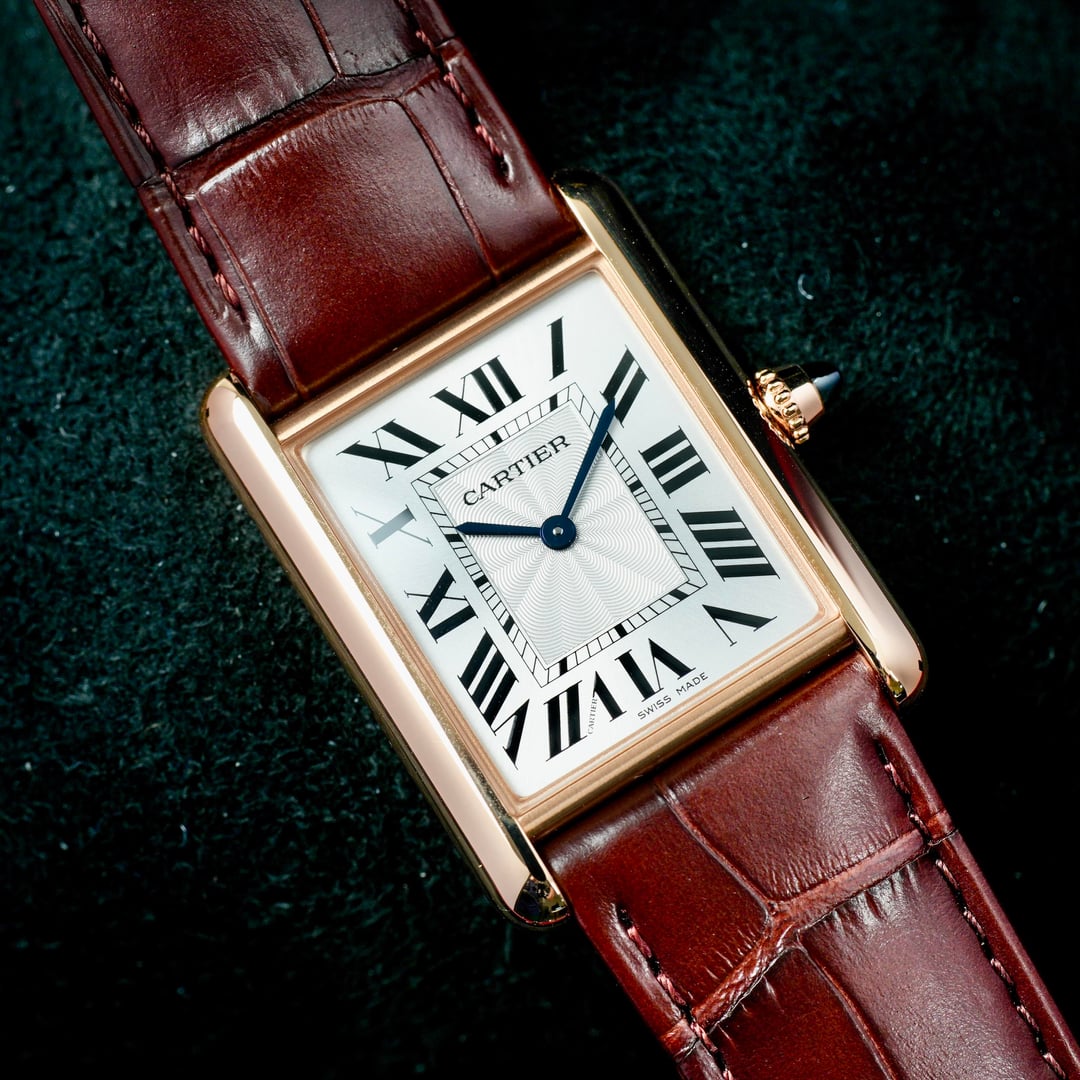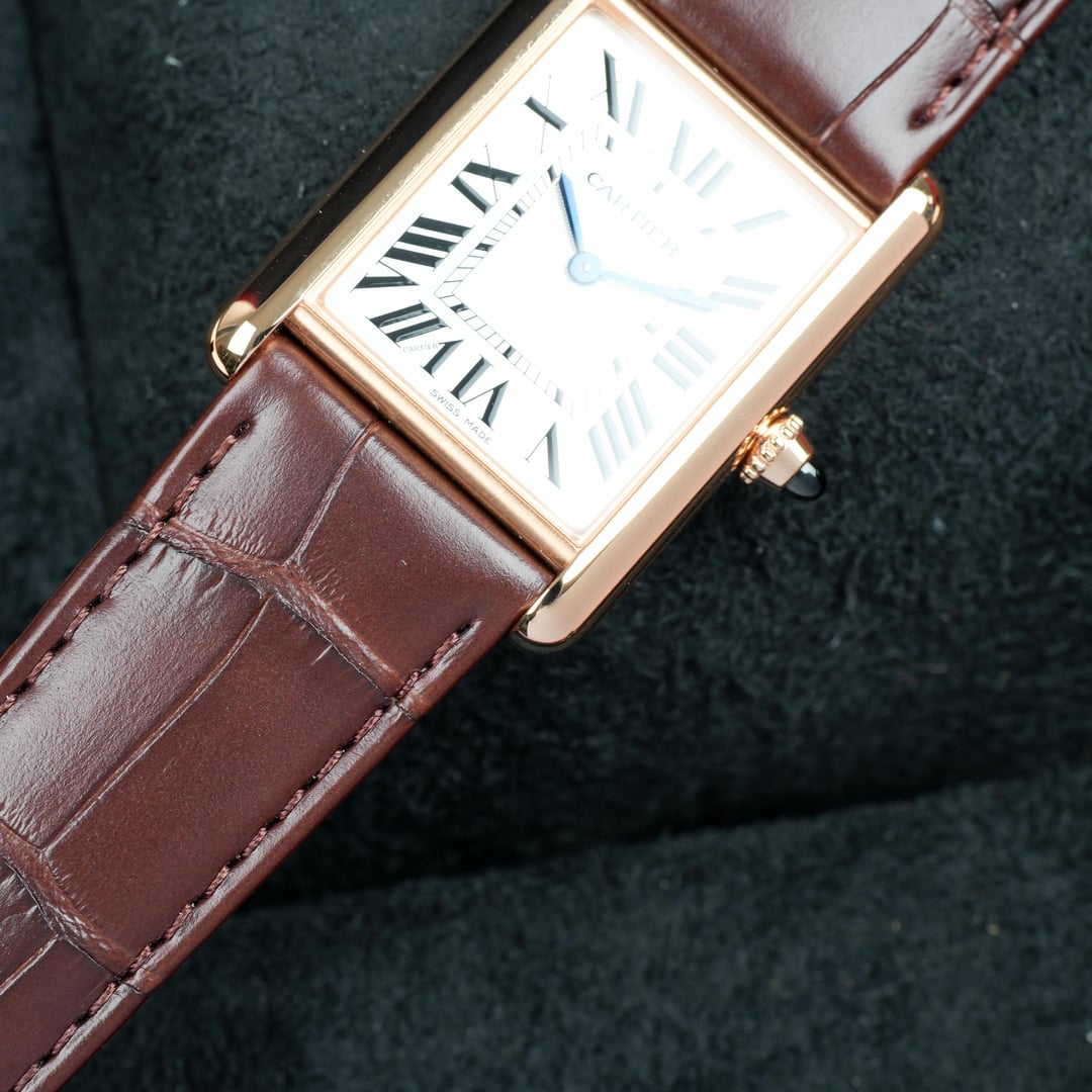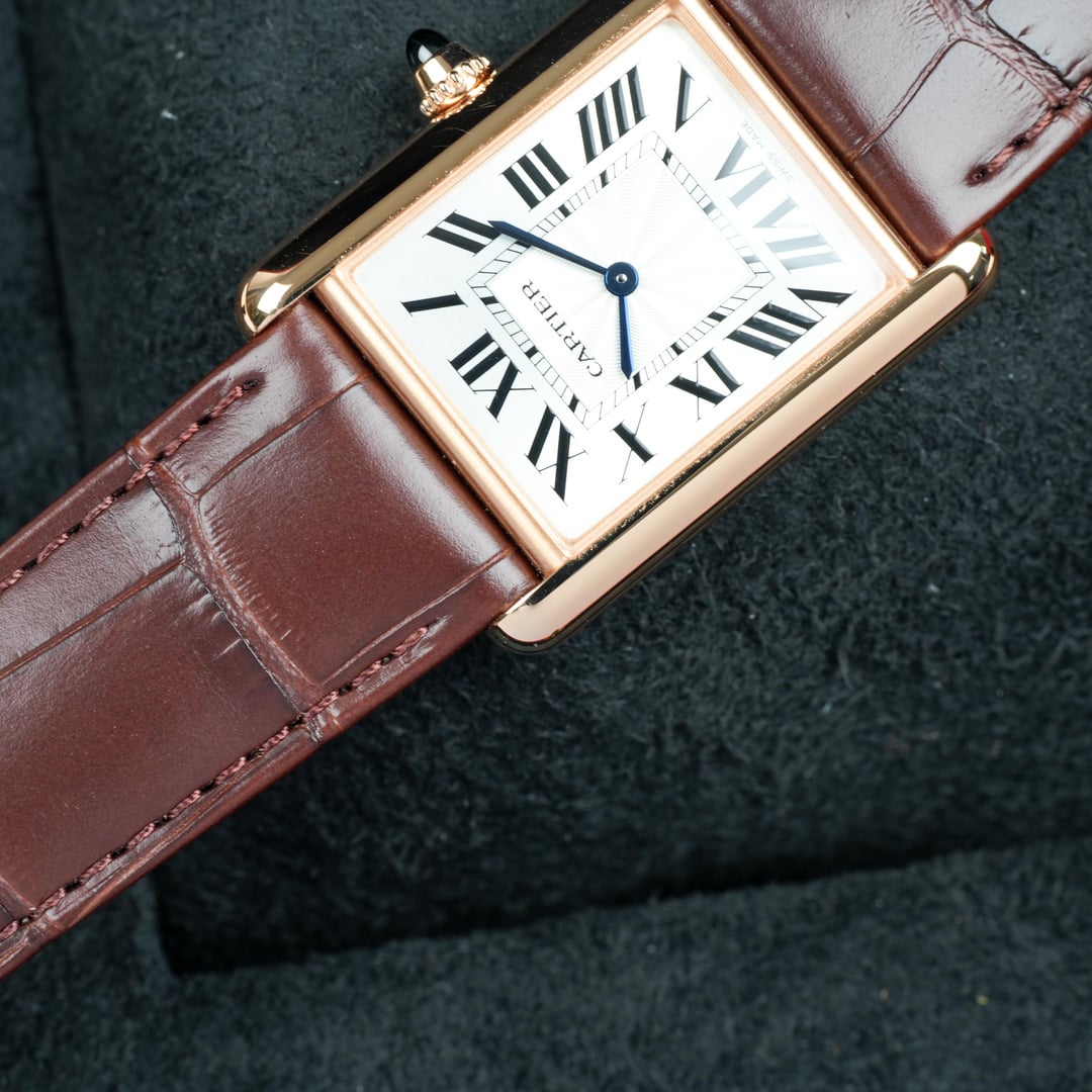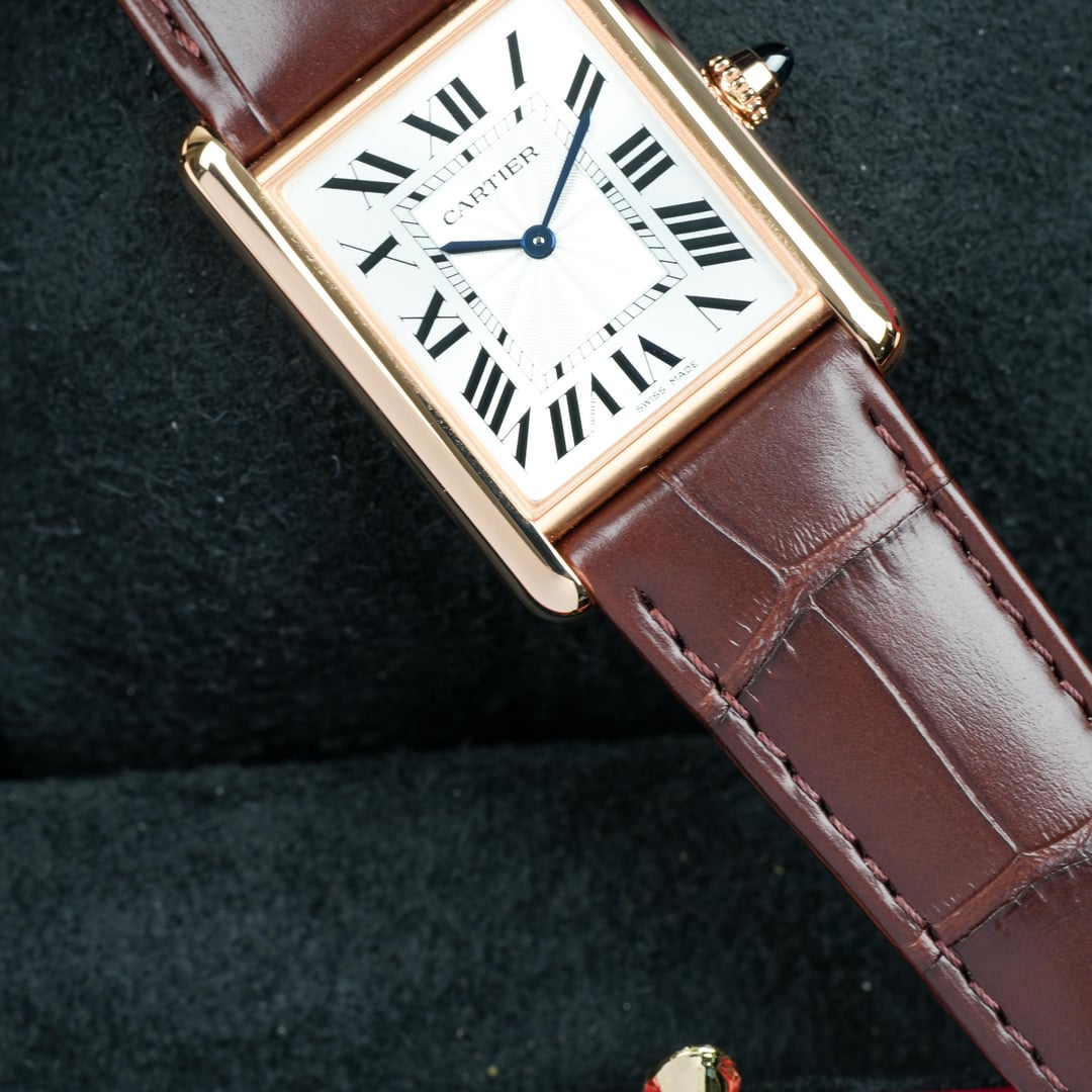 2025 Cartier Tank WGTA0011Complete Set Mint Timestamp: [https://imgur.com/a/IcxBSXX](https://imgur.com/a/IcxBSXX) The WGTA0011’s rectangular case is crafted in 18-karat rose gold, measuring approximately 33.7 mm × 25.5 mm with an elegant 6.6 mm thin profile that ensures comfortable wear under a cuff. Its silvered dial is punctuated by Cartier’s signature Roman numerals and blued-steel sword hands, creating a striking yet refined visual contrast. A classic beaded crown set with a sapphire cabochon completes the case architecture with a discreet flourish. At the heart of this watch lies a manual-winding mechanical movement (Caliber 8971 MC), celebrating traditional watchmaking with precision and tactile engagement. The WGTA0011 is paired with a fine brown alligator leather strap secured by a tang buckle in matching rose gold, ensuring both comfort and bespoke elegance. Comes as a complete set, Inner/Outer box, Warranty Card, Booklet, Bezel Protector. Watch is in MINT condition. Please look over my pictures closely as I like to properly represent the watch you will be receiving. Please look over my pictures closely as I like to properly represent the watch you will be receiving. **Offered at $13,499 shipped in US or OBO.** Payments accepted: Wire or Direct Bank Transfer (Bank of America). Shipping is always FedEx/UPS overnight, fully insured. I am an avid enthusiast and collector and am not affiliated with any watch brand I post. **Always open to trades or purchases! Looking for Audemars Piguet, Rolex, Patek Philippe, F.P. Journe, Vacheron Constantin, and other luxury brands.** I guarantee every watch I sell to be 100% authentic. Follow me on IG: JJ\_Timepiece\_Co Call or text (941) 800-3931
