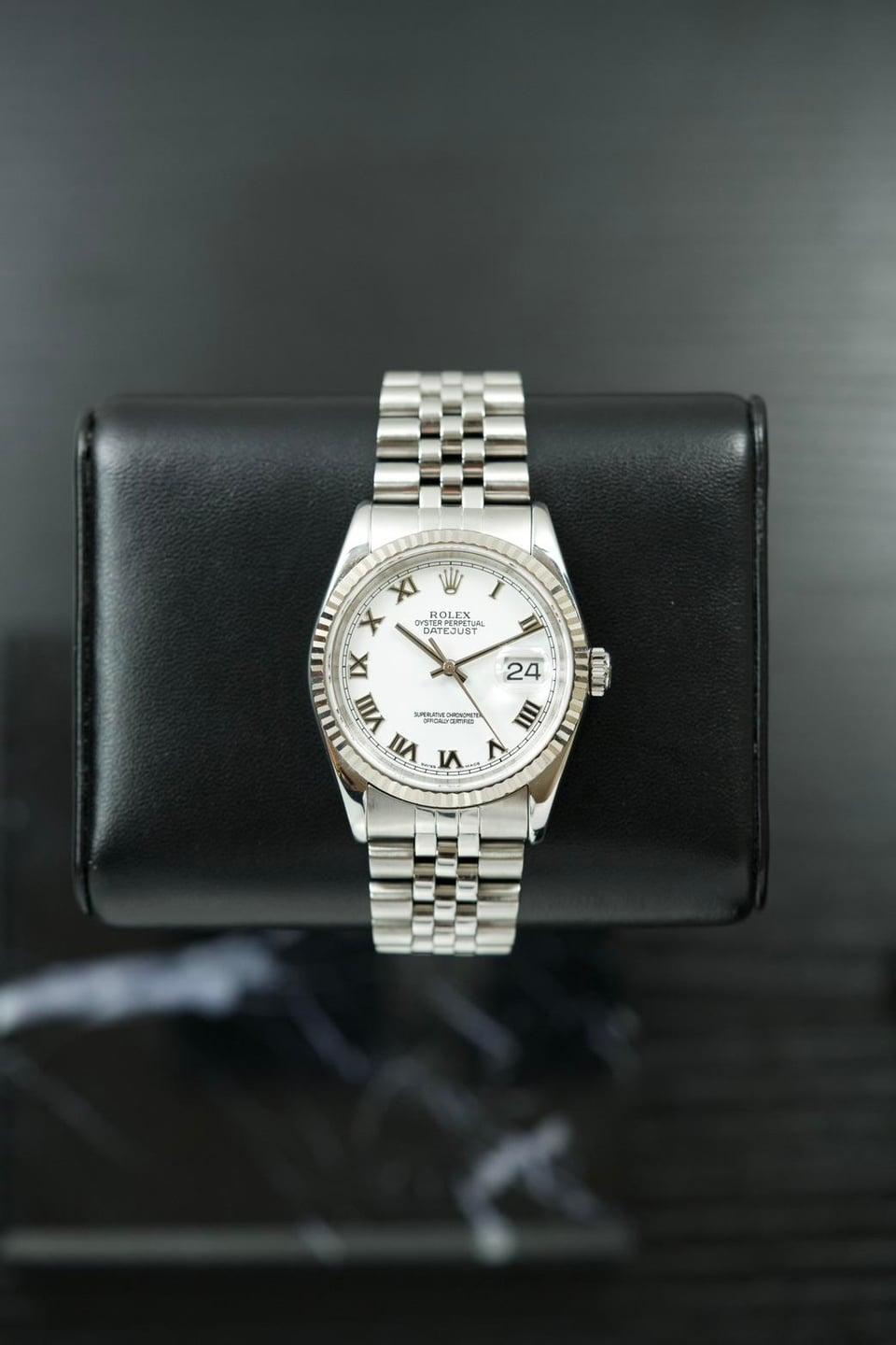 Offered for sale is a **Rolex Datejust 36 ref. 16234**, an F-serial example dating to the 2003–2005 production range. This is a classic no-holes case configuration paired with the fluted bezel and Jubilee bracelet, making it one of the most timeless Datejust references Rolex produced. The watch is in honest, well-kept condition and wears beautifully on the wrist. The bracelet has **19 links**, fitting an average-to-larger wrist comfortably. [Timestamp + Photos](https://imgur.com/gallery/2005-rolex-datejust-16234-80bxDTh) [Instagram](https://instagram.com/walkerwristco) [Facebook](https://www.facebook.com/share/16qMAGW9mA/?mibextid=wwXIfr) **Details:** • Reference: 16234 • Serial: F-Serial (circa 2003–2005) • Case Size: 36mm • Case: No-holes case • Dial: White Roman • Bezel: White gold fluted • Bracelet: Jubilee, 19 links • Crystal: Sapphire • Movement: Automatic **Condition:** • Overall good condition • Clasp shows signs of a previous light polish attempt. This can be easily corrected if desired, but I chose to leave it as-is. Please see photos for reference. **Included:** • Watch only (naked) **Price:** 💲5️⃣,8️⃣9️⃣9️⃣ Location: Dallas, TX **Payment:** Wire transfer preferred Face-to-face deal welcome locally. Happy to FaceTime serious buyers. Strong references available — deal with confidence.