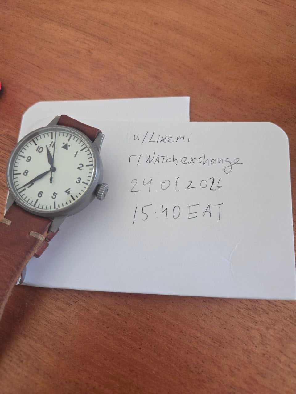 **Timestamp:** \[inside the post\] **Album:** [https://drive.google.com/drive/folders/1yHLBKw\_sM31l\_sI6mnruQqq-\_UB9vIYQ?usp=drive\_link](https://drive.google.com/drive/folders/1yHLBKw_sM31l_sI6mnruQqq-_UB9vIYQ?usp=drive_link) **Description:** Up for sale is my Laco Venedig 42mm (Ref. 861894). **Location** I am currently located in Nairobi, Kenya. International shipping only (DHL). **Condition:** * **Case:** Excellent condition. The sandblasted finish is clean and well-maintained. * **Crystal:** Generally clean sapphire, but there is a **very small, faint scratch between the 7 and 8 o'clock positions**. Invisible in daily wear. * **Movement:** Laco 24 (ETA 2824-2 base). Running strong. It is in original factory condition (never opened/serviced). * **Strap:** Currently fitted with a high-quality **aftermarket brown leather pilot strap**. Please note the original Laco strap is not included. **Specs:** * **Model:** Venedig 42 (Ref. 861894). * **Case Size:** 42mm diameter / 12.8mm thickness. * **Lug Width:** 20mm. * **Dial:** Full Lume (Cream) Type-A. * **Reference:** FL 23883 case engraving. **What’s Included:** * Watch. * **Original Purchase Invoice** with my name on it (Dated Oct 2016) – Proves single ownership. * Original Laco Box (Leather zipper case and outer box). **Price & Shipping:** **Asking $650 USD + shipping (DHL)** * **Shipping:** **DHL Express Shipping** (Delivery takes 3-5 business days to US/Europe). * **Payment: Wire or** PayPal Goods & Services (Buyer covers \~4.5% fee) or Crypto