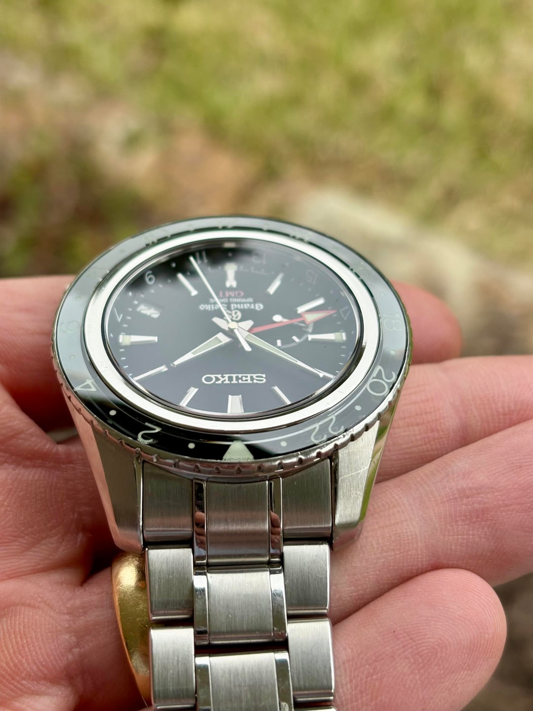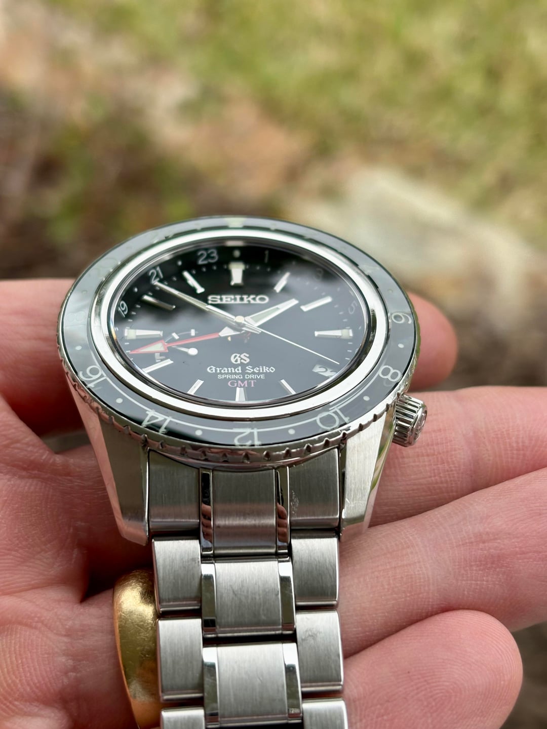For sale is my Grand Seiko SBGE001, the original Spring Drive GMT in stainless steel. Beautiful finishing, smooth sweep, and an iconic early GS sport reference. - Full box & papers (no card however I don’t think they had one for this model?) - Service history documented - Spring Drive GMT (Cal. 9R66) - Very good overall condition - daily wear but case is nice and most of the wear is to the caseback. Price: $2,950 shipped (CONUS) Payment via PayPal G&S (buyer covers fee and must have history) or F&F, Venmo, Zelle, wise. Timestamp + photos available. Message me with any questions!