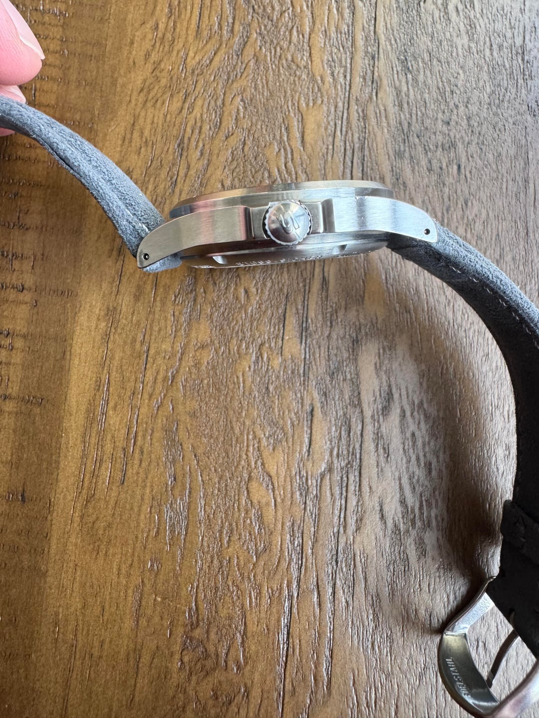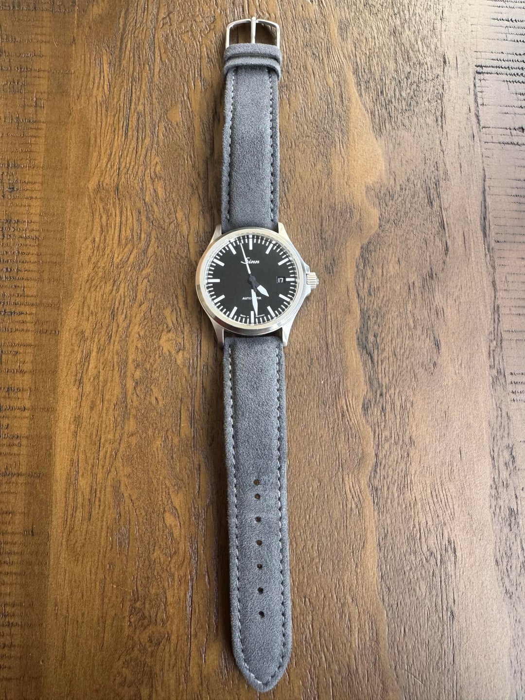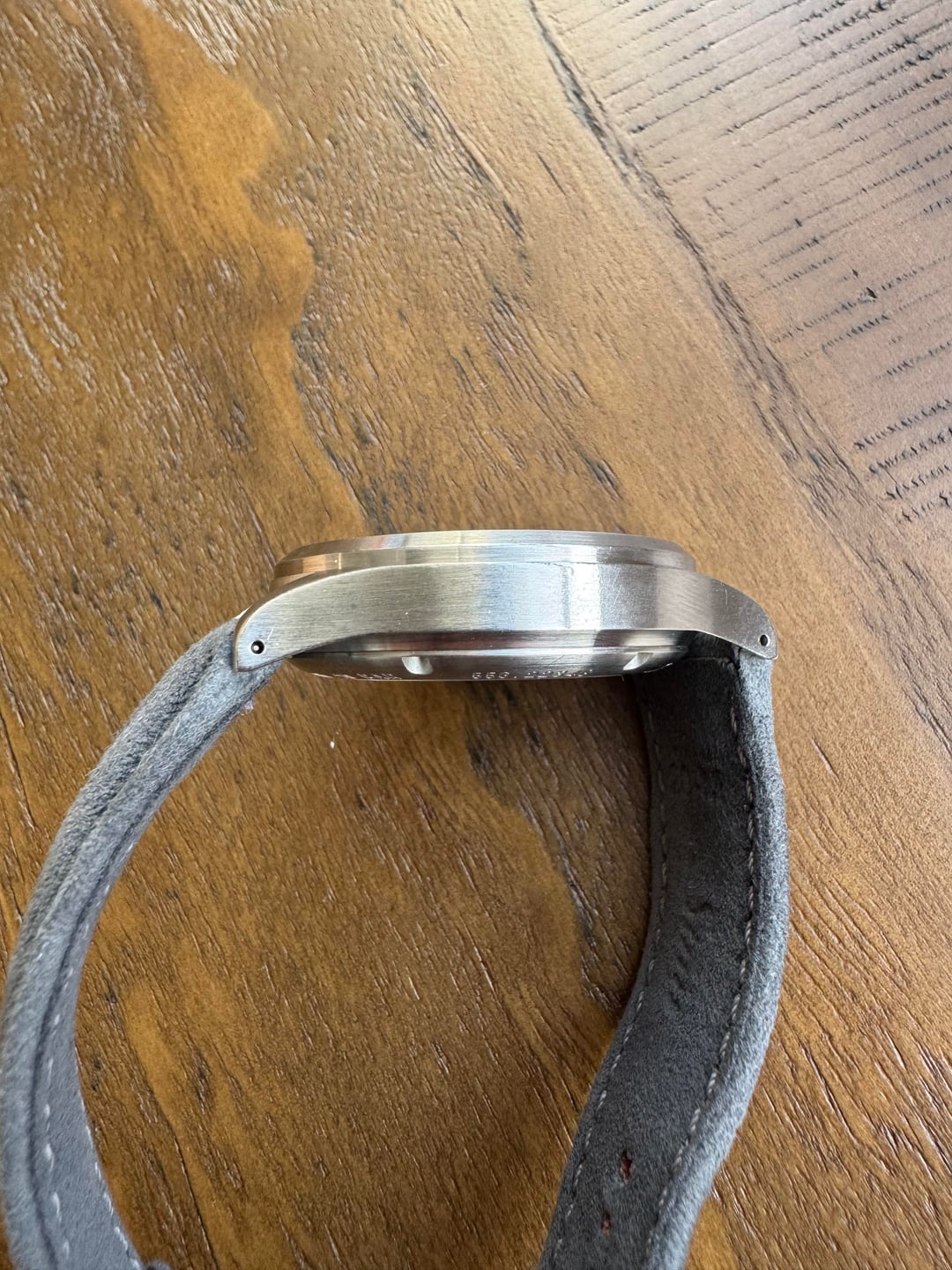 Quick catch and release for me, I think I am going to try and find a Sinn 356 instead. This is a hugely popular watch so I won’t go into great detail, but rather just speak on the condition. The AR coating on the sapphire is clean. Crown action is good. Box and papers are included, I just didn’t photo them. Comes on the very cool Sinn factory Alcantara strap- this is genuinely a super neat material I hadn’t tried yet. There are a couple tiny flea bites on the bezel. You can see them by the 5:00 in the first picture. Let me know if there are any questions. Asking $850 shipped CONUS only