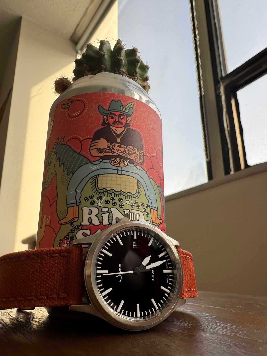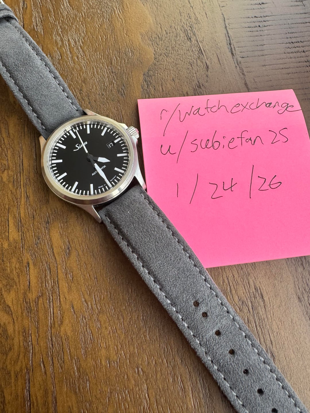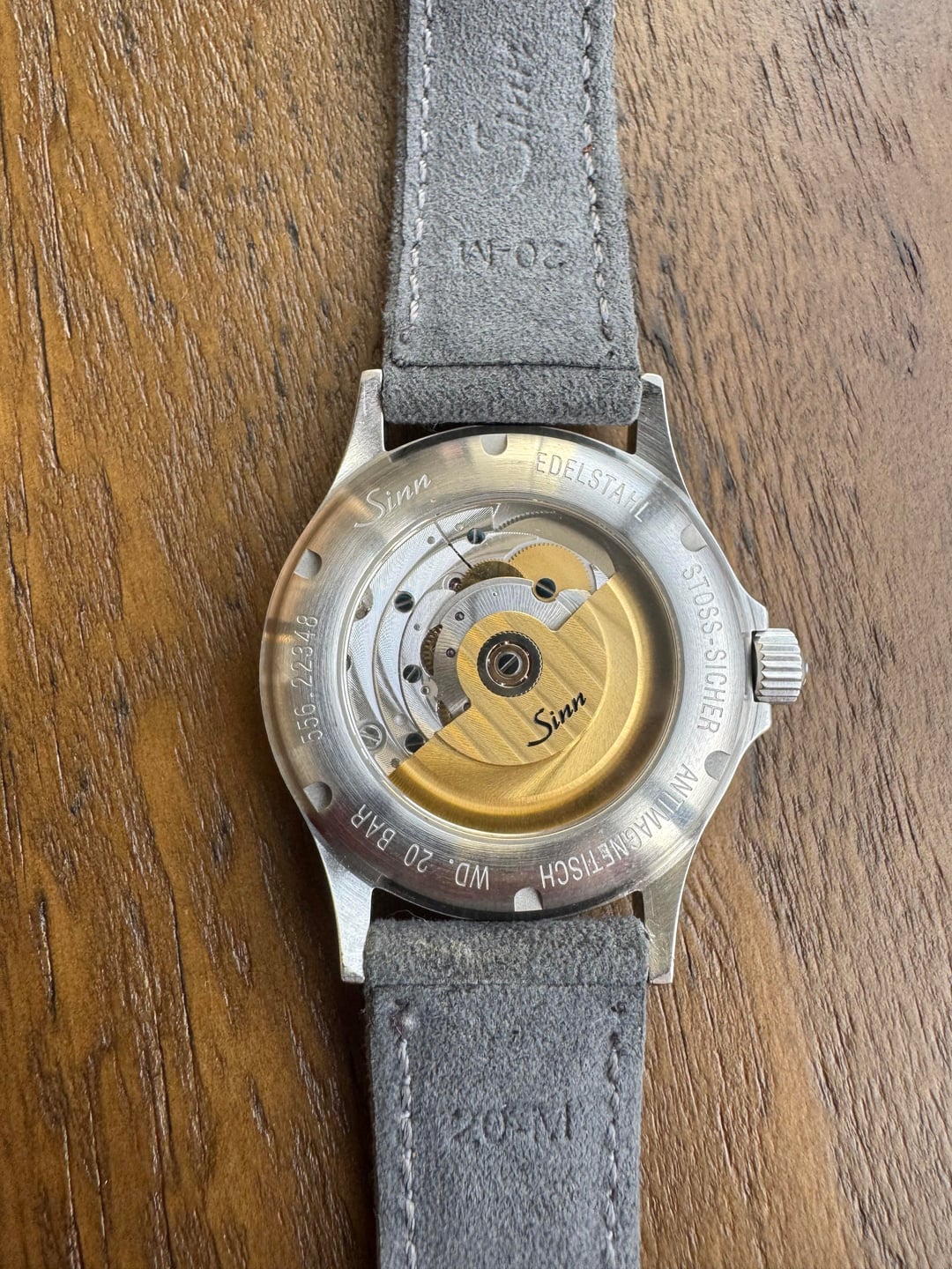 Quick catch and release for me, I think I am going to try and find a Sinn 356 instead. This is a hugely popular watch so I won’t go into great detail, but rather just speak on the condition. The AR coating on the sapphire is clean. Crown action is good. Box and papers are included, I just didn’t photo them. Comes on the very cool Sinn factory Alcantara strap- this is genuinely a super neat material I hadn’t tried yet. There are a couple tiny flea bites on the bezel. You can see them by the 5:00 in the first picture. Let me know if there are any questions. Asking $850 shipped CONUS only