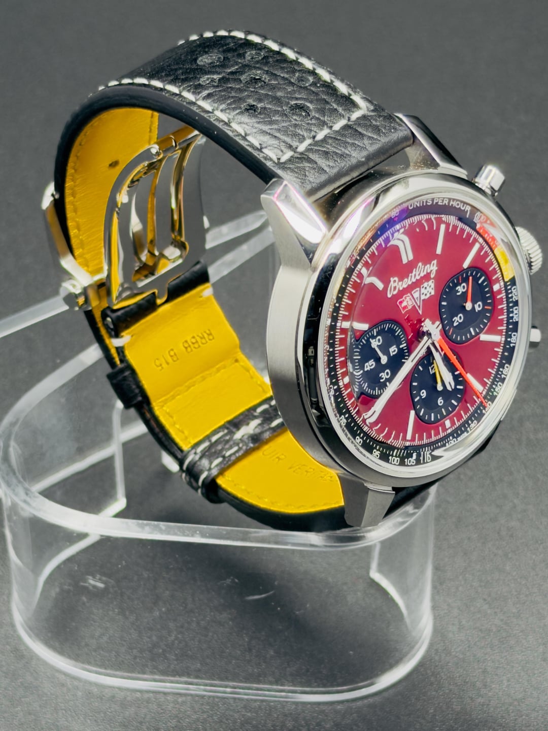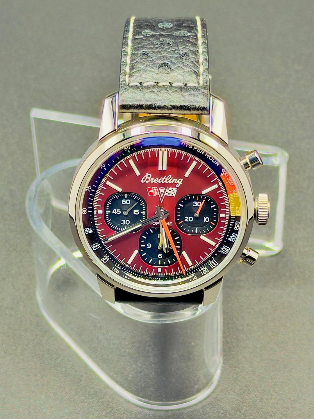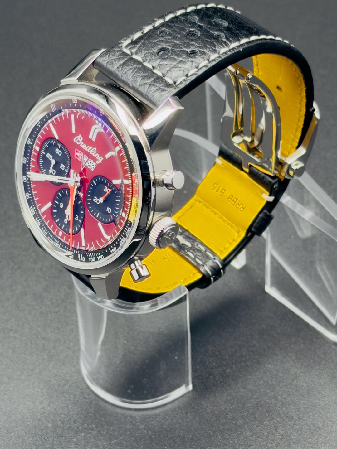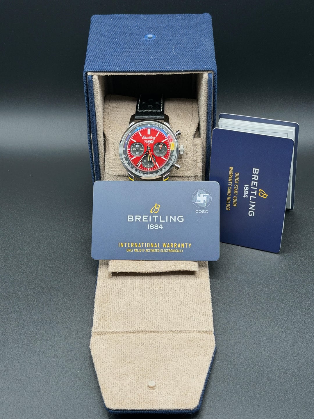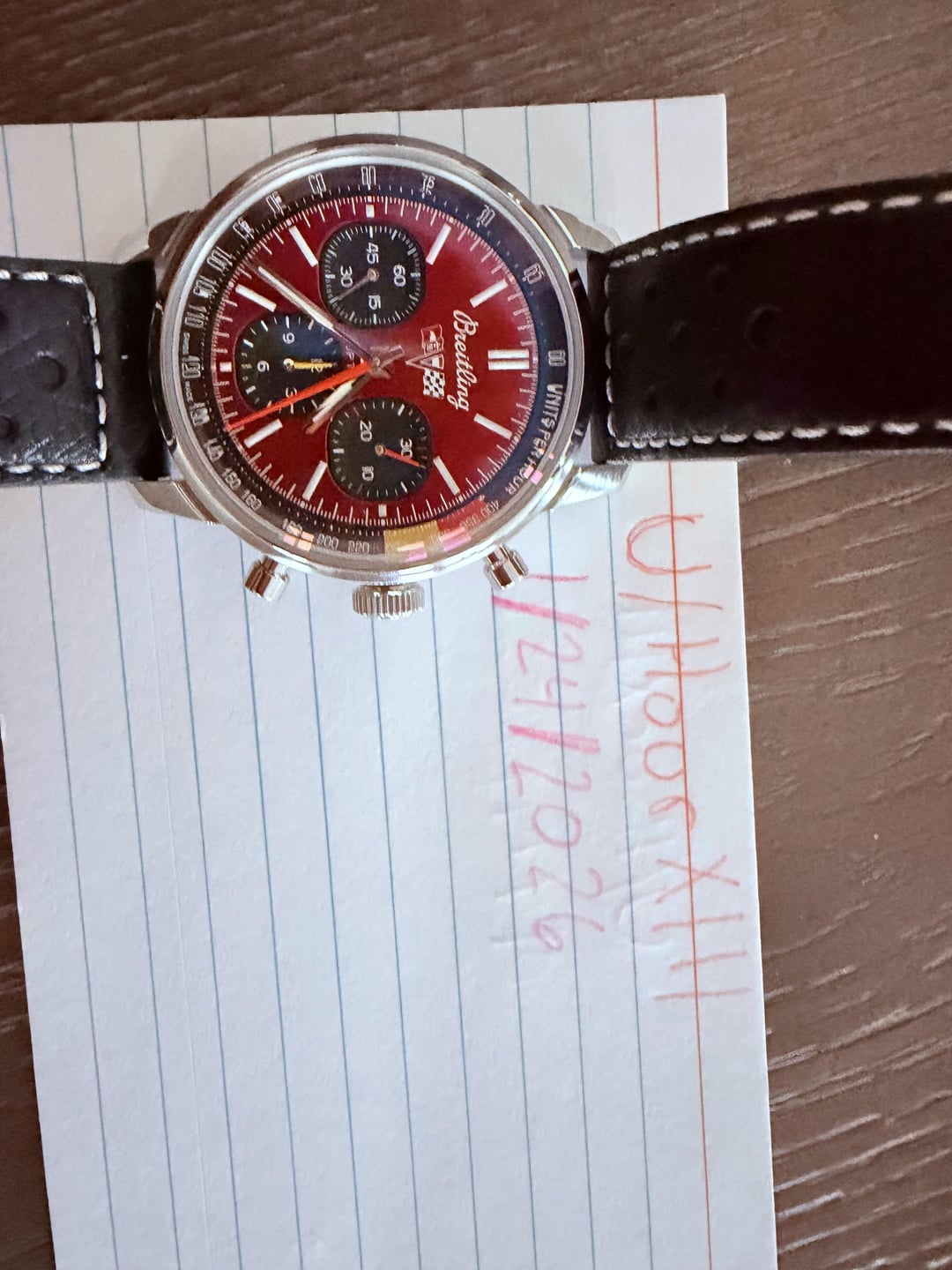 Now Available!! Brand: Breitling Model: 2024 Top Time Corvette B01 Chronograph Reference: AB01761A1K1X1 Case Size: 41mm Case Material: Stainless steel Movement: In-house Breitling B01 automatic chronograph Power Reserve: ~70 hours Dial: Black with slide rule bezel Crystal: Sapphire (front and back) Strap: Black leather strap with Breitling deployant clasp Condition: The watch is in really good condition. Crystal is clean with no scratches or chips. Case shows only light, normal wear consistent with careful use. Strap is in very good shape with plenty of life left. Chronograph functions perfectly and keeps strong time. What's Included: Breitling Navitimer B01 Chronograph 41 Original Breitling box Papers / warranty card(still active) Note: Not interested in trades at this time Happy to answer questions or provide additional photos Due to me just starting to sell watches I have no references available, but I'm willing to work with buyers to establish trust and build a good reputation within the community. I am open to using a trusted escrow and authentication service for you to buy with confidence! Thanks for looking!