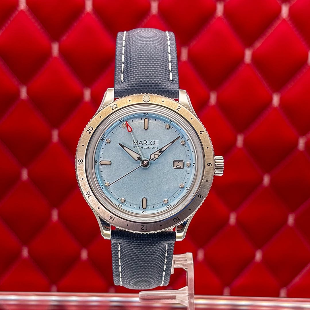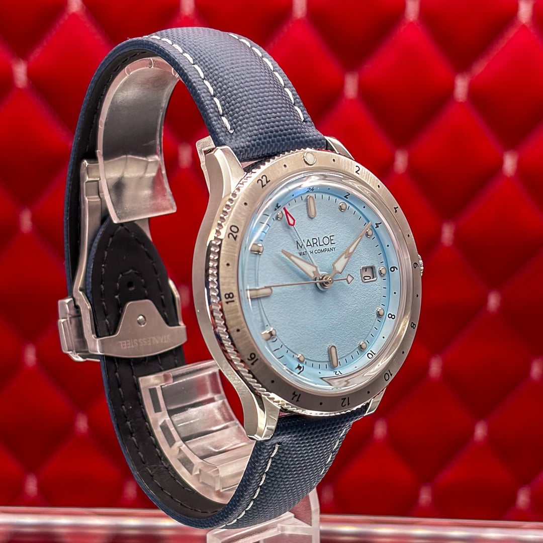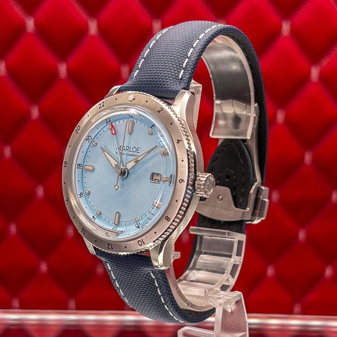 🏒🥅🚨 \[WTS\] Marloe Watch Company Day GMT - "True" GMT Miyota 9075 - Full Set For sale is my Marloe Day GMT, a beautifully designed traveler's GMT from the Scottish microbrand Marloe Watch Company. This watch is famous for being one of the most affordable ways to get a "True GMT" movement with an independently adjustable local hour hand. The "Day" edition features a stunning sky-blue dial with a unique "sandpaper" texture in the center and a smooth outer ring. It’s a limited release, with only 500 pieces produced in the first run. This timepiece is in pre-owned vintage condition and is ready for a new home. 💰 Price: 💲880 USD Condition & Photography Please review all photos for the most accurate representation of this watch's condition. Our macro photography is designed to capture every detail, including the smallest imperfections, ensuring you can buy with complete confidence. Shipping & Service We ship fully insured overnight via FedEx for your peace of mind. We are happy to arrange a video call to show the watch and answer any questions—just reach out anytime. We guarantee the authenticity and accuracy of all our timepieces. Your satisfaction is our highest priority, and we strive for a smooth, transparent, and 100% positive transaction. As a dedicated hockey coach and passionate timepiece collector (@pucks\_timepieces), I've spent years immersed in the world of horology. I now combine this passion with my hockey-playing daughters, and together we create the unique presentations you see here. Our photography is inspired by contemporary artists like KAWS, Banksy, Joan Cornellà, Death NYC, and Shepard Fairey. This artistic approach adds a distinctive, creative character to how each watch is presented. When you purchase from me, you can expect a seamless experience. I'm highly responsive and happy to provide extra photos or details to ensure you feel great about your purchase. Timestamps: https://drive.google.com/file/d/19peey\_rYJCx8dJighrKy5URXQuICvoKF/view?usp=sharing & https://drive.google.com/file/d/1BiAMFAXyYQq3MwJeGXZFlq4mv4cWzfQK/view?usp=sharing
