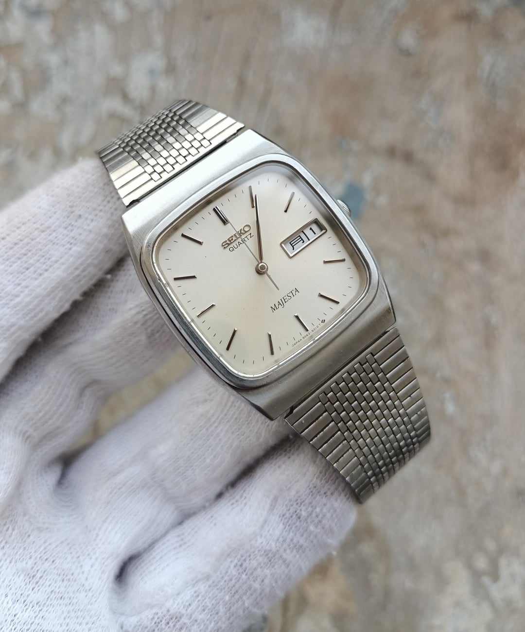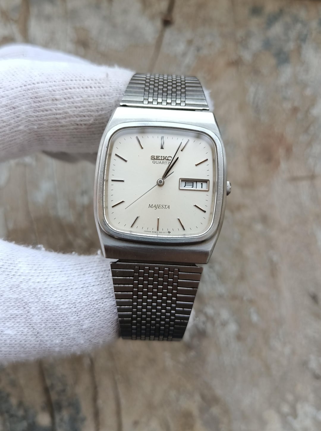 For sale is a Seiko Majesta Ref-9063-5010 AO. Year period 1983. Description and Features: Overall this is in good Working condition. Vintage SEIKO MAJESTA analogue, made in 1980's, all functions operate correctly, keeping good time considering age. ⚡ Key Highlights \* Caliber: Seiko 9063A Twin Mode Quartz. \* 21 Jewels. \* Manufacture: Japan. \* Crystal: Mineral Crystal. \* Day Display: Bilingual—English and Japanese Kanji. \* Indices: Stick-style markers. \* Bracelet After Market. \* Case Material: Stainless steel. \* Era: Mid-1983. \* Condition: Watch Only Please see the pictures carefully. SPECIFICATIONS: Movement: Quartz, Case Diameter, 35 mm, Thickness 7 mm, Lug to Lug 39 mm. Please comment before messaging. Batteries are not allowed to be sent with the watches as per shipping policy. Payment Method: PayPal F&F, Crypto, & Payoneer Only. Shipping Via UPS. Price $ 200 Shipped. After payment confirmation the scheduled shipping time will be 2-3 working days.