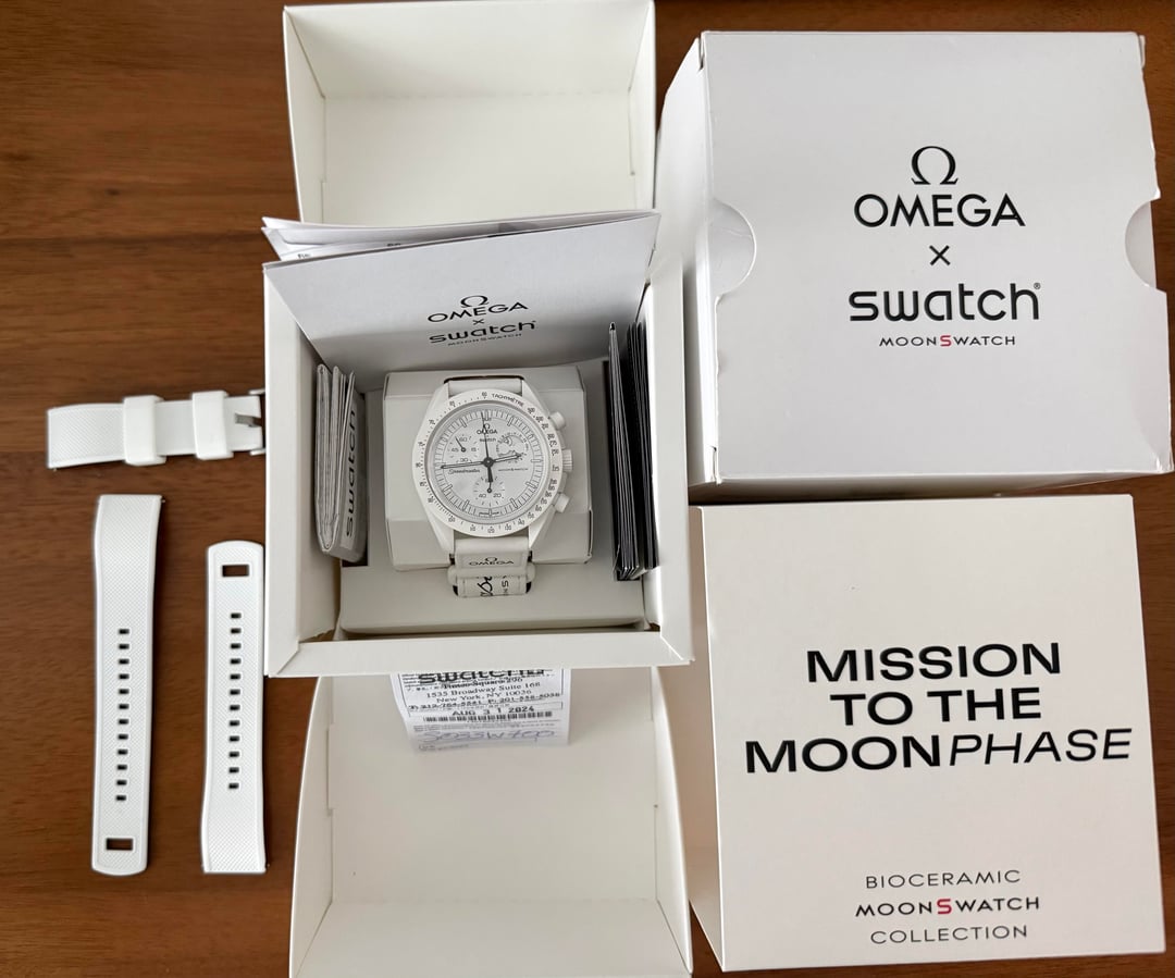 [WTS] Mission to Moonphase (Snoopy) MINT / Full Kit - $310 For sale: Swatch Mission to Moonphase - Full Moon Reference: SO33W700 Condition: Like new — Worn 5-8 times. Watch could pass as new - case and crystal is flawless. OEM Velcro strap never worn and in flawless condition. Including white FKM rubber straps for good karma. Location: Washington DC Metro USA Price: $310 + Label Payment: Venmo, PayPal F&F / G&S (buyer must account for fee), or Zelle What You Get (Full Kit) / Notes: - Full Kit w/ original boxes and papers - FKM white rubber strap / short & long - Happy to conduct a FaceTime call to provide video, close-ups, and any angle you need. - If in the Northern Virginia / National Capital Region, I’m also happy to meet up in person.