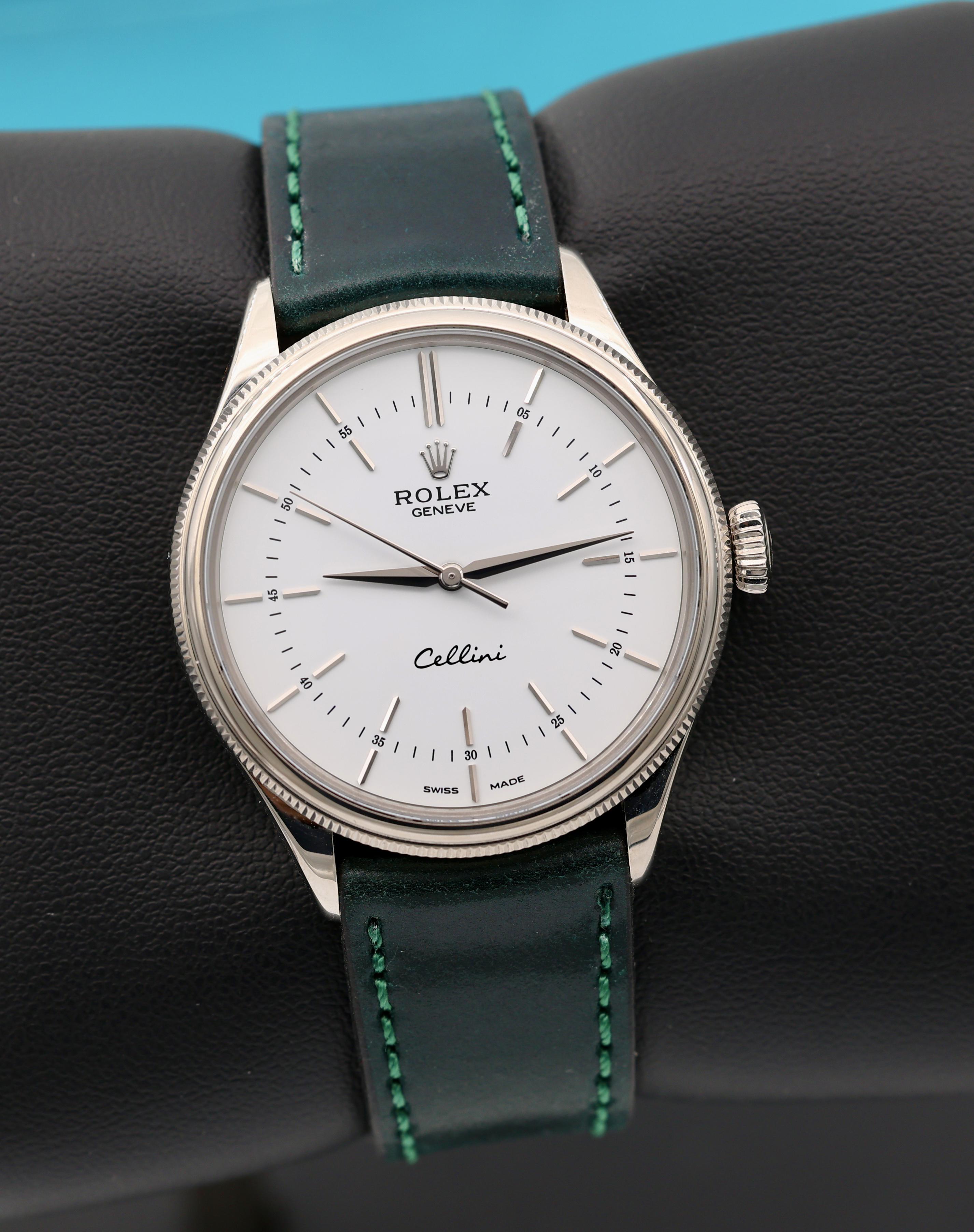 Hello All - I am putting for sale - Rolex Cellini. 18K White Gold. Very clean. Caseback still stickered. AM shell cordovan leather. OEM gold clasp. Final Reduction price... 🔥 Asking $9600 + ✈️ 📷 More Pics: [https://www.dropbox.com/scl/fo/49socvd7d69mrn7s0tvmi/AMCMXettoD-Qwlz2MEr6Ap4?rlkey=0l59rlomdeh3pv8chy4jk8mik&st=gm55rrjf&dl=0](https://www.dropbox.com/scl/fo/49socvd7d69mrn7s0tvmi/AMCMXettoD-Qwlz2MEr6Ap4?rlkey=0l59rlomdeh3pv8chy4jk8mik&st=gm55rrjf&dl=0) 📆 Timestamp: [https://www.dropbox.com/scl/fi/7seonkuo4ssijktoxz24o/IMG\_6473.JPG?rlkey=doq0uhhegep98xpx0uxr41it6&st=z02ylijh&dl=0](https://www.dropbox.com/scl/fi/7seonkuo4ssijktoxz24o/IMG_6473.JPG?rlkey=doq0uhhegep98xpx0uxr41it6&st=z02ylijh&dl=0) Watch located in NJ USA. I am very comfortable doing a facetime to show the watch if needed. Please PM me for any questions that you may have. I am certain it will go to a good home. Thanks for looking. \*\* 🛡️Buy with Confidence!! 700+ references. \*\* ⭐️Checkout my profile for other amazing watches. \*\* 📦All packages are shipped Fedex with insurance. \*\* 🌎Shipping accepted globally.