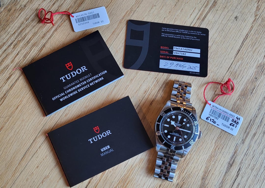 Selling my excellent condition Tudor Black Bay Monochrome, 41mm on Tudor 5 link jubilee bracelet. Maybe the slightest of marks, but nothing worth pointing out, you will be thrilled with the condition This was authorized dealer purchased in late August 2025 so plenty of Tudor / Rolex factory 5 year warranty left. Love this watch on the 5 link bracelet with the T-Fit clasp, best adjustable clasp I've used, easily. [timestamp ](https://postimg.cc/TKsk0zCt) $3850, not looking for any trades on this one. Plenty of references from over 200 sales that I'd be happy to share Thanks for looking! Greg