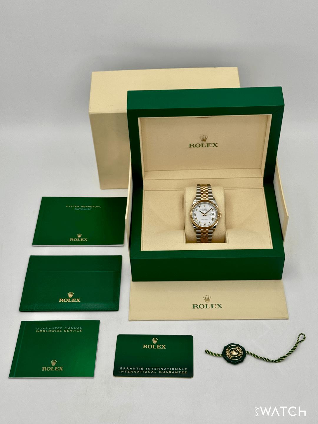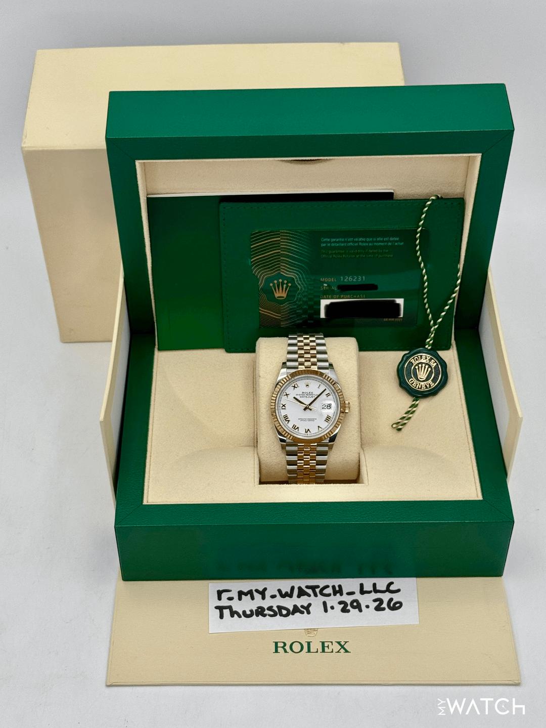 🔵**2024 Rolex Datejust 36mm 126231 Two-Tone Oystersteel and Everose Gold Jubilee Bracelet with a White Roman Numeral Dial** 🔵**TRADE or SELL us your luxury watch, all brands considered. Message me details.** **Includes the following:** **✔️Original Rolex Double Boxed** **✔️Box and Papers - Yes** **✔️Warranty card dated May 2024** **✔️5 year manufacturer warranty** **✔️Manual and Warranty booklets** **✔️Green Hang Tag included** **✔️Size: 7.75inch wrist (Full Links)** **✔️Watch is in excellent overall condition. Please see photos for details.** **✔️Trades welcome** Business Name: **My Watch LLC** LOCATION: Oak Park, Michigan ✔️[MyWatchLLC.com](http://mywatchllc.com/) for current inventory ✔️Google Business Listing [https://g.co/kgs/Cmd6FPW](https://g.co/kgs/Cmd6FPW) ✔️Business Hours M-F 9-6 ✔️Facetime/Video chat/calls welcome to view the watch interested. ✔️Contact: 248-422-0909 via text or call for quickest response. 🟢TERMS: Visit [MyWatchLLC.Com](http://mywatchllc.com/) for payments accepted 🟢REFERENCES/REVIEWS: We are well reviewed on all platforms from google, trust pilot, rolexforums, additionally we have 300+ reference in multiple FaceBook watch groups, reference checks welcome. 🟢SHIPPING: If you are not local, we offer Fully Insured FedEx overnight shipping in the USA for a fee. International shipping available. [https://mywatchllc.com/products/2024-rolex-datejust-36mm-126231-two-tone-jubilee-white-roman-numeral-dial](https://mywatchllc.com/products/2024-rolex-datejust-36mm-126231-two-tone-jubilee-white-roman-numeral-dial)