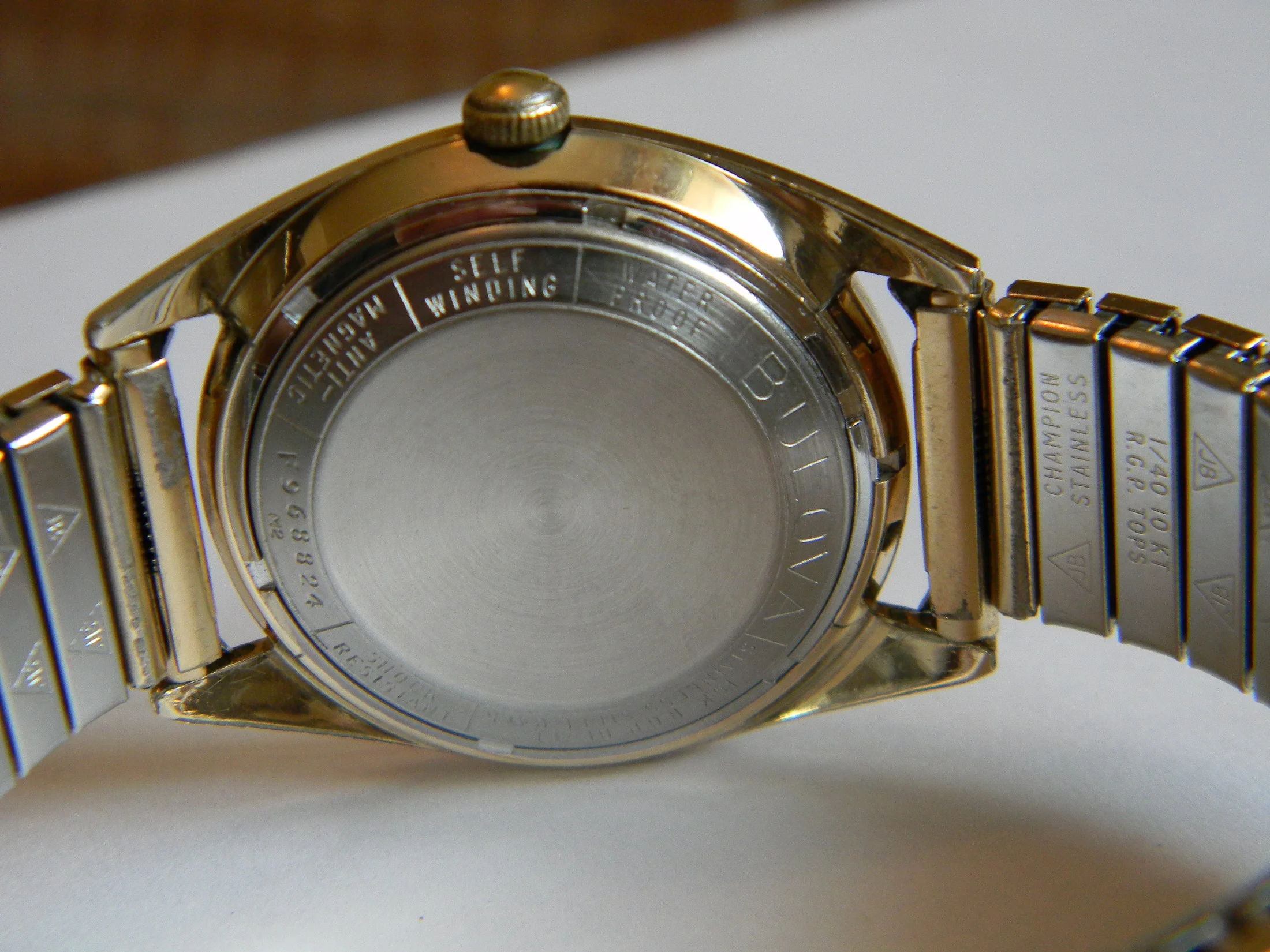 Rolled gold plate case and steel case back