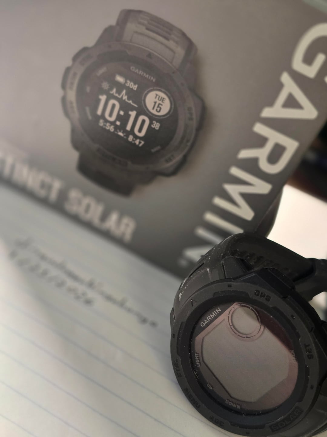 Hello, up for sale is a Garmin Instinct Solar. Its the first gen. Still works great. Only selling because I upgraded to a Coros. Comes with the original box only (charger is mia currently but still looking) 100 plus label