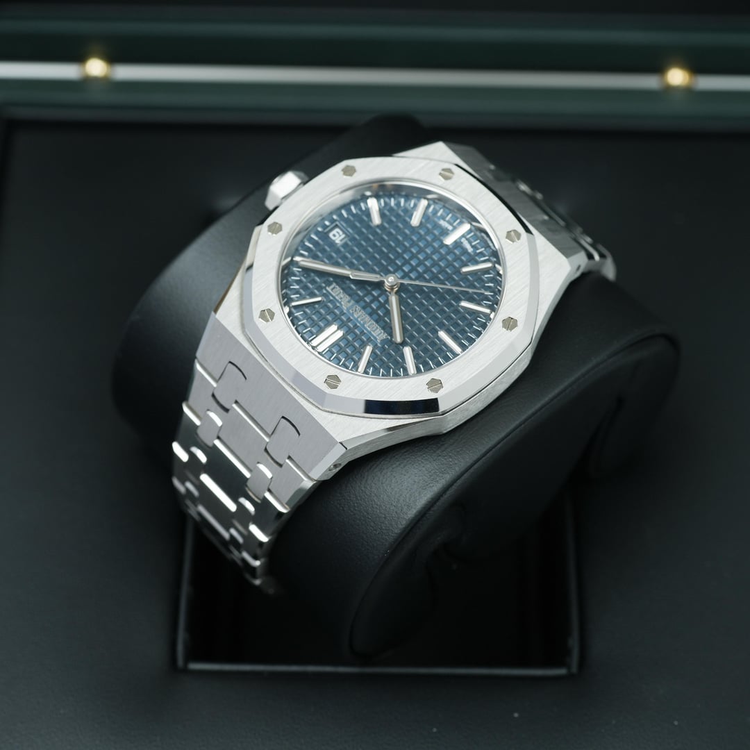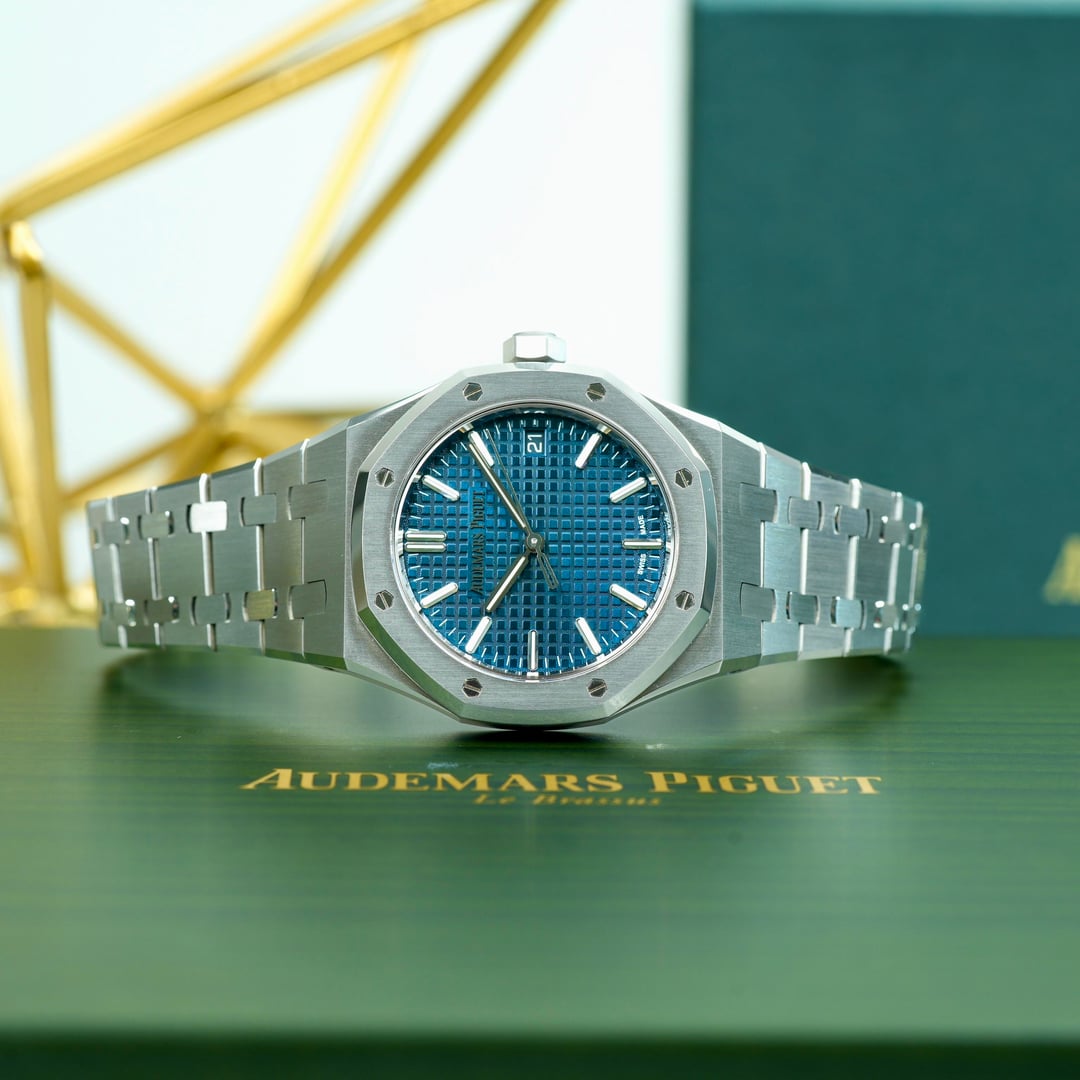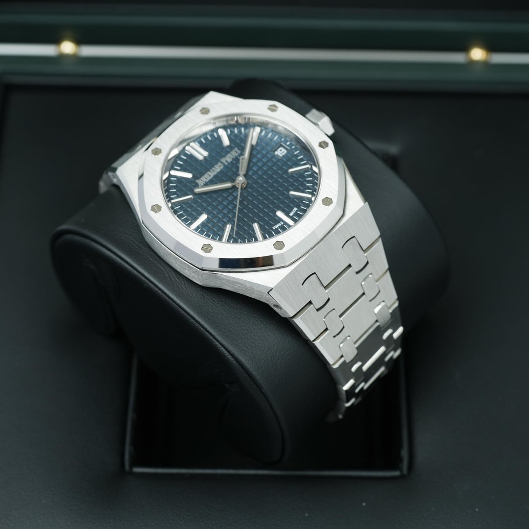 2022 Audemars Piguet Royal Oak 50th Anniversary 15550ST 37mm Complete Set Timestamp: [https://imgur.com/Qrxz1fH](https://imgur.com/Qrxz1fH) Timeless and instantly recognizable, the Audemars Piguet Royal Oak 15550ST 37mm embodies iconic design paired with modern refinement. Crafted in stainless steel with the brand’s signature brushed and polished finishes, it features a versatile Blue “Grande Tapisserie” dial that delivers understated elegance and everyday wearability. Powering the watch is the in-house Caliber 5900, a slim automatic movement offering a 60-hour power reserve and visible through the sapphire caseback. Completed by the Royal Oak’s integrated bracelet, this piece is a seamless balance of form, function, and technical excellence. Comes as a complete set with Inner/Outer box, Booklets, Certificate of Origin, Warranty card. This timepiece is overall in mint condition. Please look at my pictures as I like to fully represent the exact condition of the watch through my photography. **Offered at $51999 shipped in US or OBO.** Payments accepted: Wire or Direct Bank Transfer (Bank of America). Shipping is always FedEx/UPS overnight, fully insured. I am an avid enthusiast and collector and am not affiliated with any watch brand I post. **Always open to trades or purchases! Looking for Audemars Piguet, Rolex, Patek Philippe, F.P. Journe, Vacheron Constantin, and other luxury brands.** I guarantee every watch I sell to be 100% authentic. Follow me on IG: JJ\_Timepiece\_Co Call or text (941) 800-3931