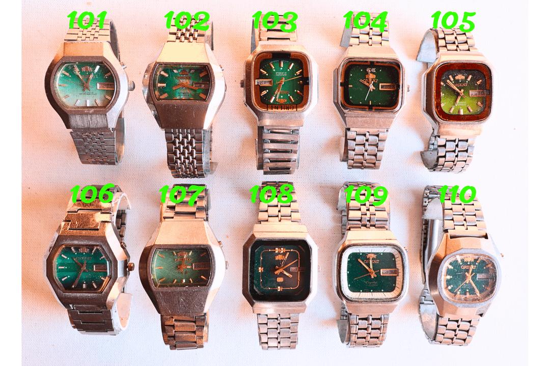 Up for sale is a fantastic selection of Vintage Orient timepieces (Japanese Original). This batch features a wide variety of styles from the 70s and 80s, including rare colored dials, faceted crystals, and unique case shapes (TV-shape, Octagonal, etc.). 📸 PRICING: Please check the photo album. Individual prices for each watch are detailed in the album/caption. Prices start from just $90 USD! 💰 Payment & Deals: Payment: We accept PayPal (G&S) for a secure transaction. Bulk Discounts: We offer special discounts for large quantity orders. If you are a reseller or collector looking to buy in bulk, message us for a quote! ✈️ Shipping Details: Ships from: Cairo, Egypt 🇪🇬. Shipping Cost: $25 flat rate for a single watch. 🔥 PROMOTION: Buy 3 watches or more and get FREE WORLDWIDE SHIPPING! 🔥