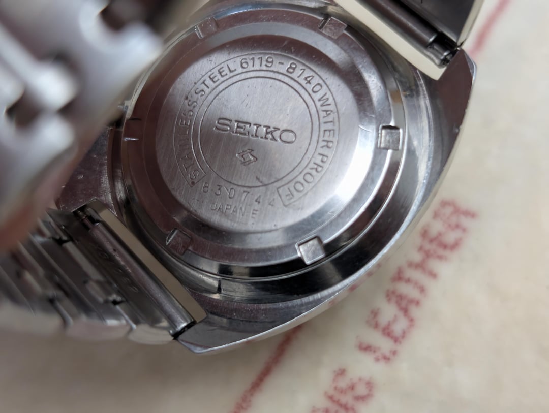 ![[WTS] Seiko 5 Sports 6119 8140 'Water 70 Proof' on (original?) bracelet XGA 062 with signed clasp, extender, and two spare links - free ship to USA 9](https://cdn-cf.watchpatrol.net/600x600/img/full/9c1e7b6e852c06956b66514bba294b1cd9735577.jpg)
