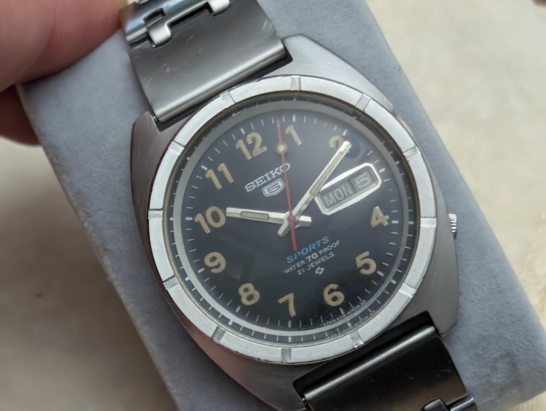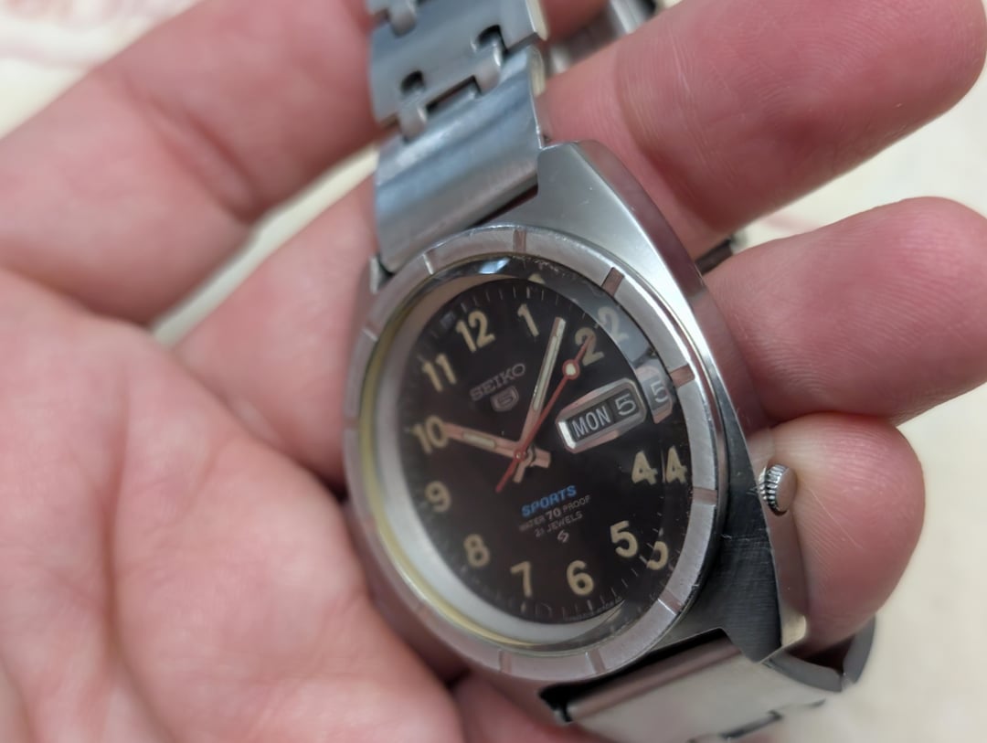 [WTS] Seiko 5 Sports 6119 8140 'Water 70 Proof' on (original?) bracelet XGA 062 with signed clasp, extender, and two spare links - free ship to USA