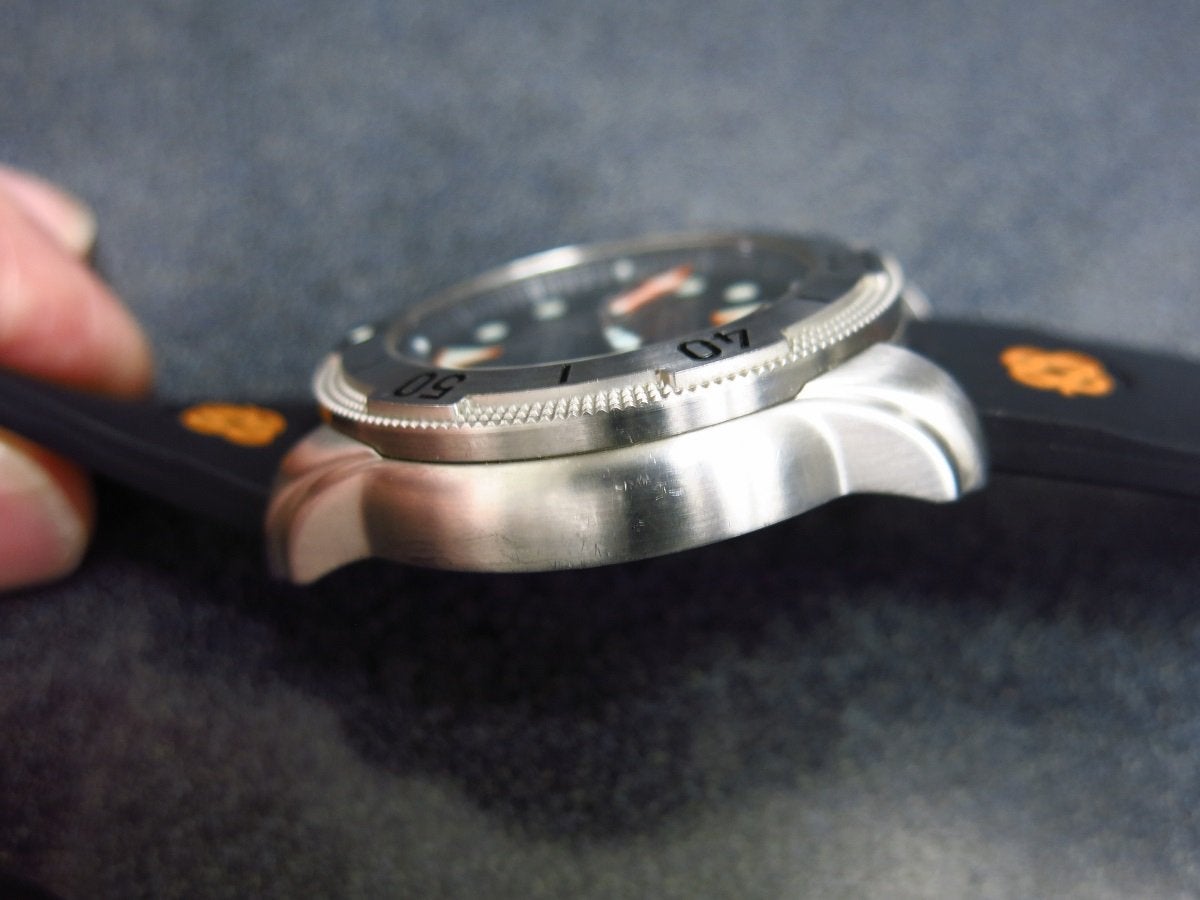 For sale I have a Deep Blue PRO TAC 1000M AUTOMATIC – DIVER Professional Tactical Diver. This is a watch that is 45mm wide and has 22mm lugs. The movement is Seiko NH36 automatic, sapphire crystal and Helium Valve. This is real solid diver in excellent condition, it does have a few light marks on the bezel otherwise the case is clean. Crown and bezel work smoothly and all the functions work as they should. The dial is black or dark grey sunburst. It has a nice blue lume that make the time visible all night.