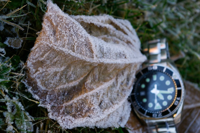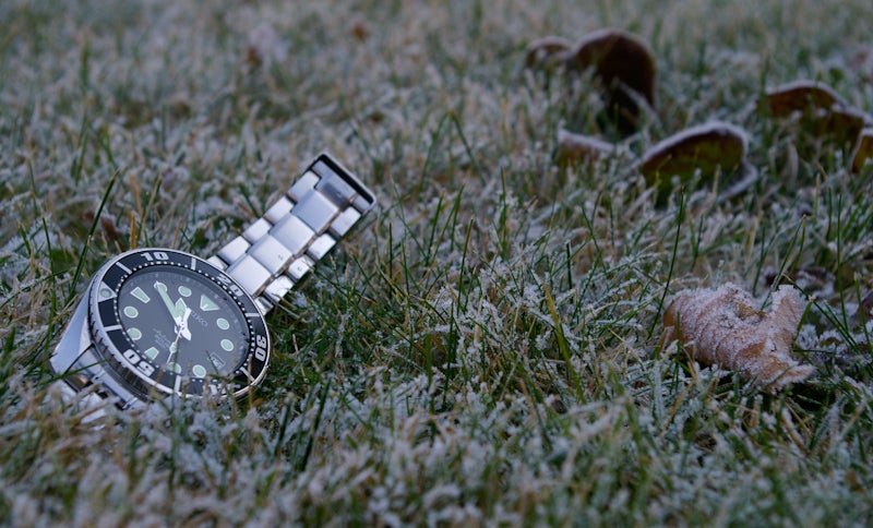 Marks and scratches on the case and crystal.