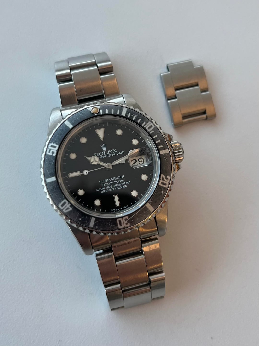 | Rolex Submariner 16800 Silver Oyster Bracelet with Black Bezel 1987 R Serial onemorewatchplease (20) |