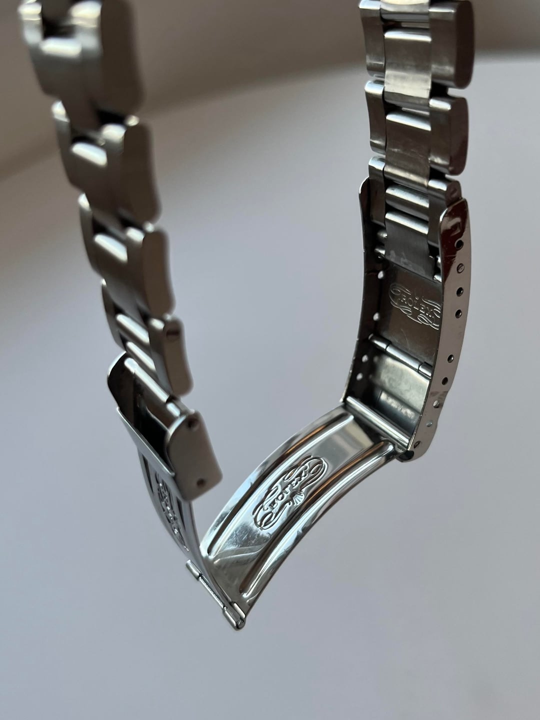 Watch is in great condition and functions perfectly mechanically, without issue. Comes as watch only (10 full links; no box or papers). Period correct 93150 bracelet/clasp and 593 end links. Minor hairlines on case, clasp, and bracelet. Beautiful patina on lume, handset, pip, and bezel.
