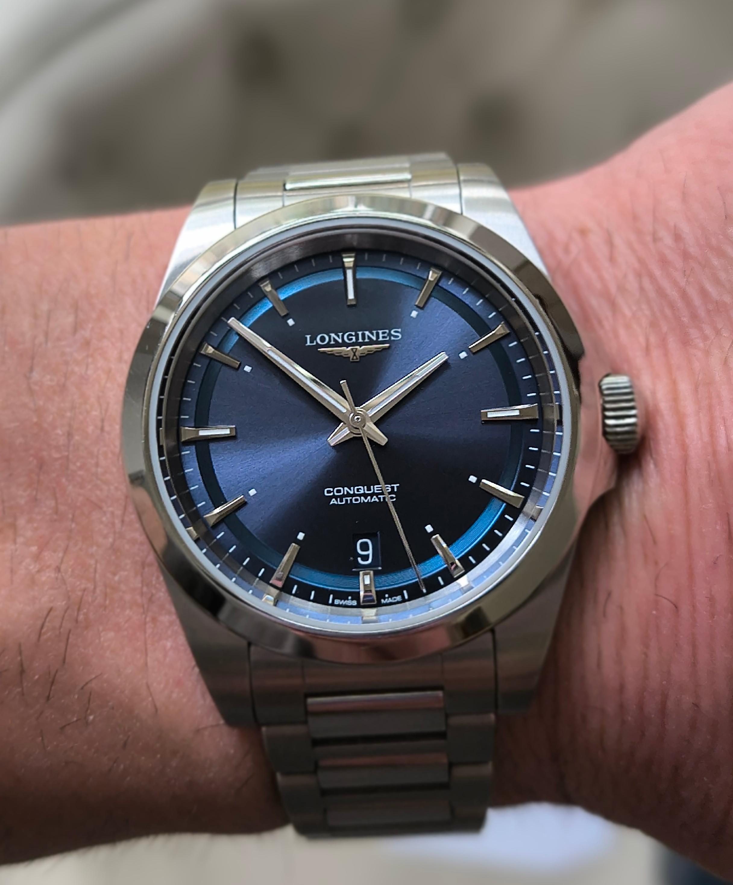 Used Longines Conquest 38, full kit with warranty. Watch is keeping excellent time and looks fantastic. Some marks on the bracelet/clasp from daily wear. The sale includes everything: receipts, box, papers, hang tags and spare links. Terrific GADA watch! $1,400 shipped. [pics and timestamp ](https://imgur.com/a/DNwg0Ok)