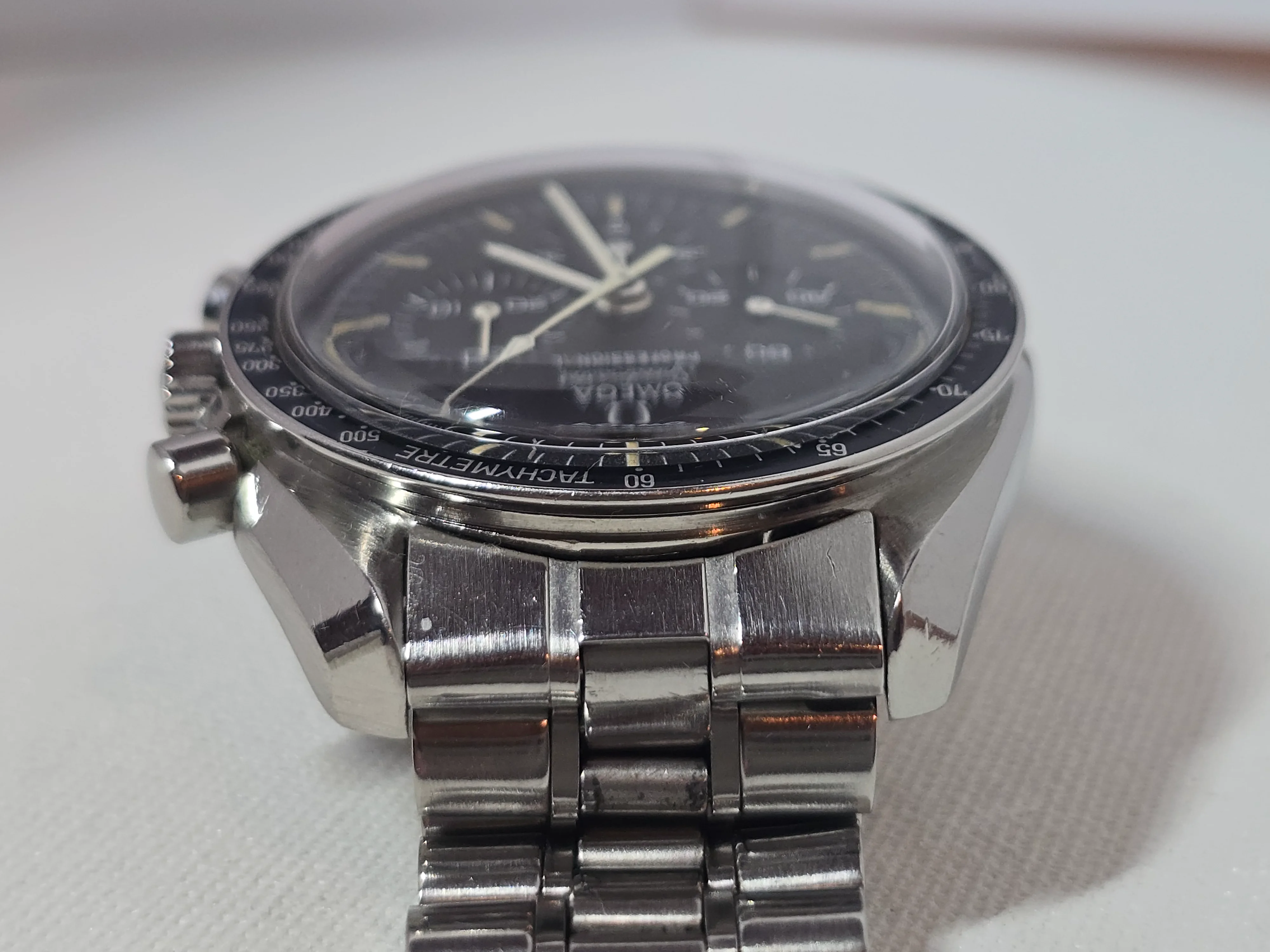145.022-69 Speedmaster with straight writing Apollo XI caseback. Includes correct 1116 bracelet with endlinks. No accessories. Serviced Nov 2023.