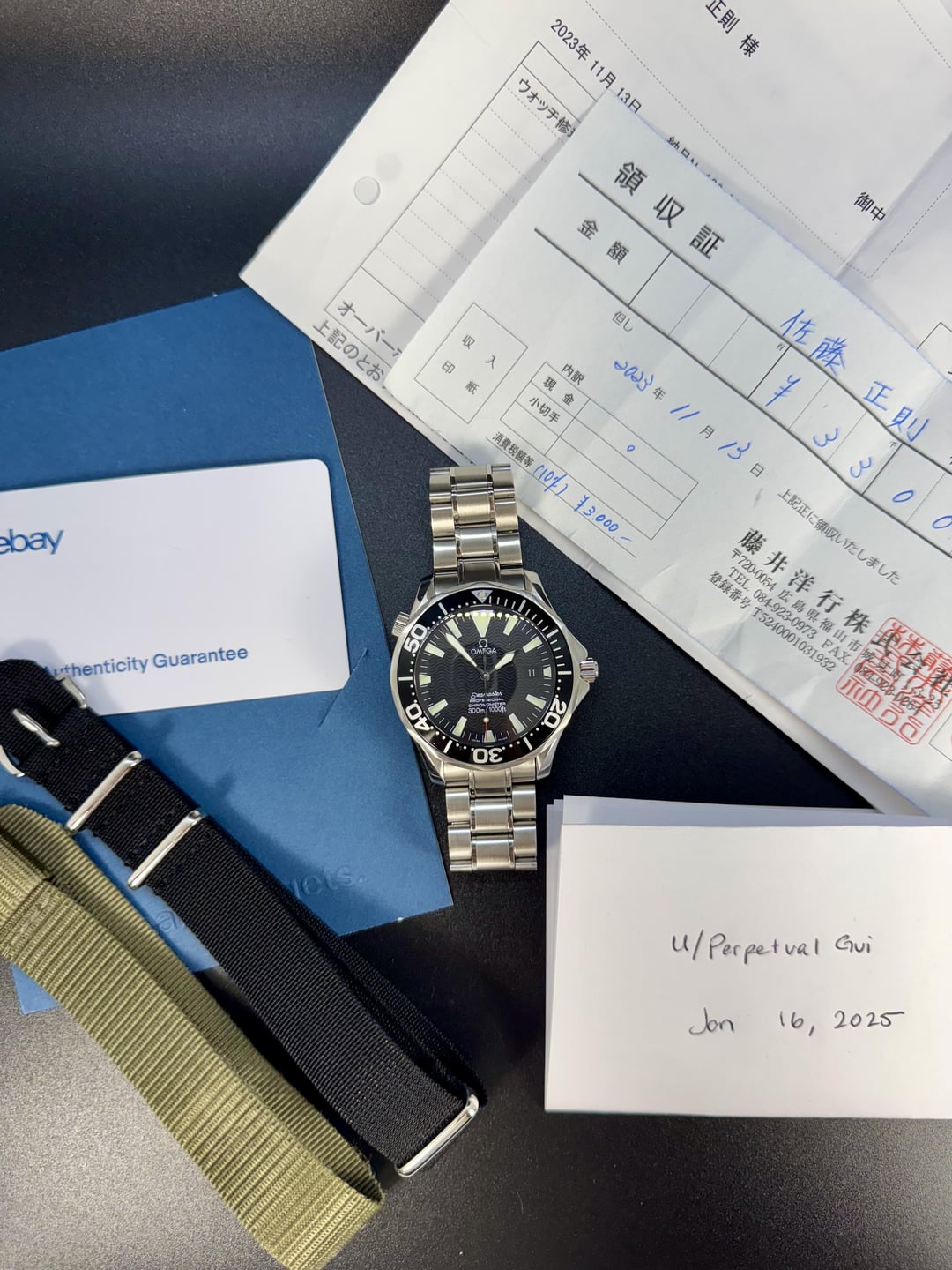 Omega Seamaster 300M 2254.50.00 “Peter Blake” Hello Everyone, Here is a used Seamaster 300M Peter Blake but in very good condition. Comes with Japanese service papers, EBay authentication card & box, and two nato straps. Bracelet accommodations wrist sizes up to 7.25 inches. * Price: $2️⃣7️⃣0️⃣0️⃣ + Shipping * Shipping: Expedited FedEx or UPS & Insured (USA only) * Payment: Bank wire, Zelle, Venmo, or PayPal F&F (only for those with many positive references or past buyers) * No returns unless watch is misleadingly represented or some degen snatches the timepiece (Hasn’t happened so may the streak continue) All the best and thanks, Gui