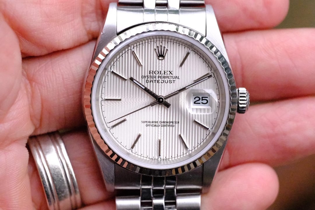 ![Thumbnail [WTS] GORGEOUS Silver Tapestry Dial Rolex Datejust Ref 16234 Fully Serviced w/ Receipt in Double Boxed Hang Tags Set! 6](https://cdn-cf.watchpatrol.net/120x120/img/full/dd9cb7140adfd19e0143a57f8d55ca49b9e6dd17.jpg)
