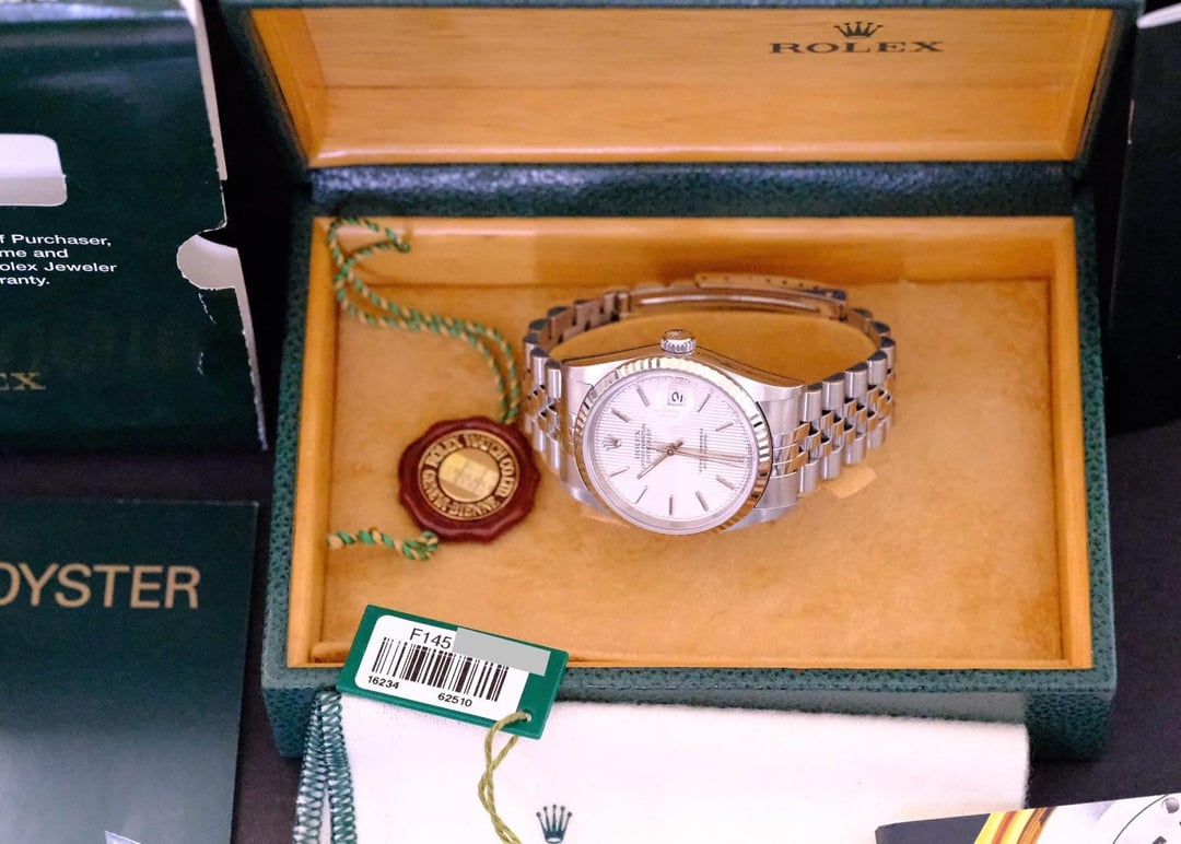 ![Thumbnail [WTS] GORGEOUS Silver Tapestry Dial Rolex Datejust Ref 16234 Fully Serviced w/ Receipt in Double Boxed Hang Tags Set! 3](https://cdn-cf.watchpatrol.net/120x120/img/full/c82821902ea219d14130d05404c4d4af43c761a1.jpg)
