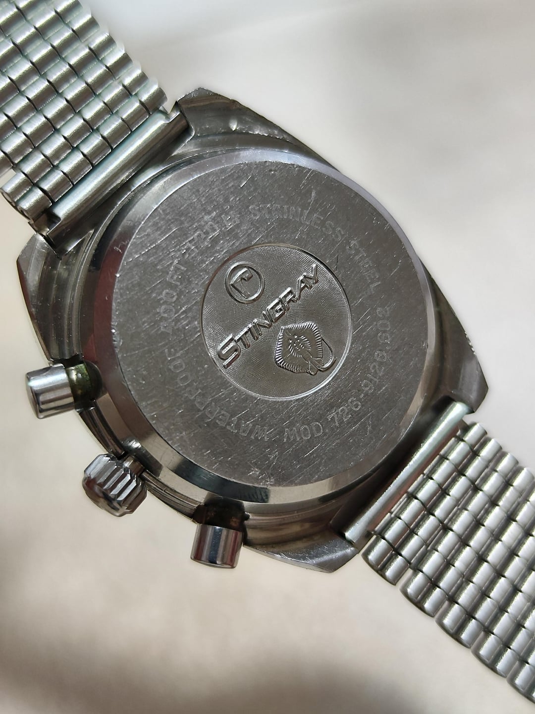 The Roamer Stingray chronographs are among the most sought-after vintage models, offered in two sub-dial versions ("Pasadina" and "Jet-Time") and a classic three-register design. Featuring Valjoux 72 movements (1969–1973) and later the upgraded 726, these watches are renowned for their craftsmanship. This example, in excellent condition, has a stainless steel case measuring 37mm x 43.5mm, suitable for both small and average wrists. Its brushed top and sides are accented by polished chamfers, adding elegance as they catch the light. A standout feature is the waterproof push-out case design, allowing the movement and dial to be serviced through the top. Originally water-resistant to 120m, it showcases exceptional technical design for a vintage chronograph. This example has repainted hands and was recently serviced. It also has the original crystal. On top of it, it comes with it's original bracelet produced by NSA. The asking price is **$1999**, firm. Shipping is included with the price through FedEx. Watch is located in Macedonia. Payment options include bank transfer, Payoneer, Western Union, and cryptocurrency (no PayPal due to restrictions on receiving funds in Macedonia). I can provide references—I'm an eBay seller with 115 orders, looking to sell outside of eBay.