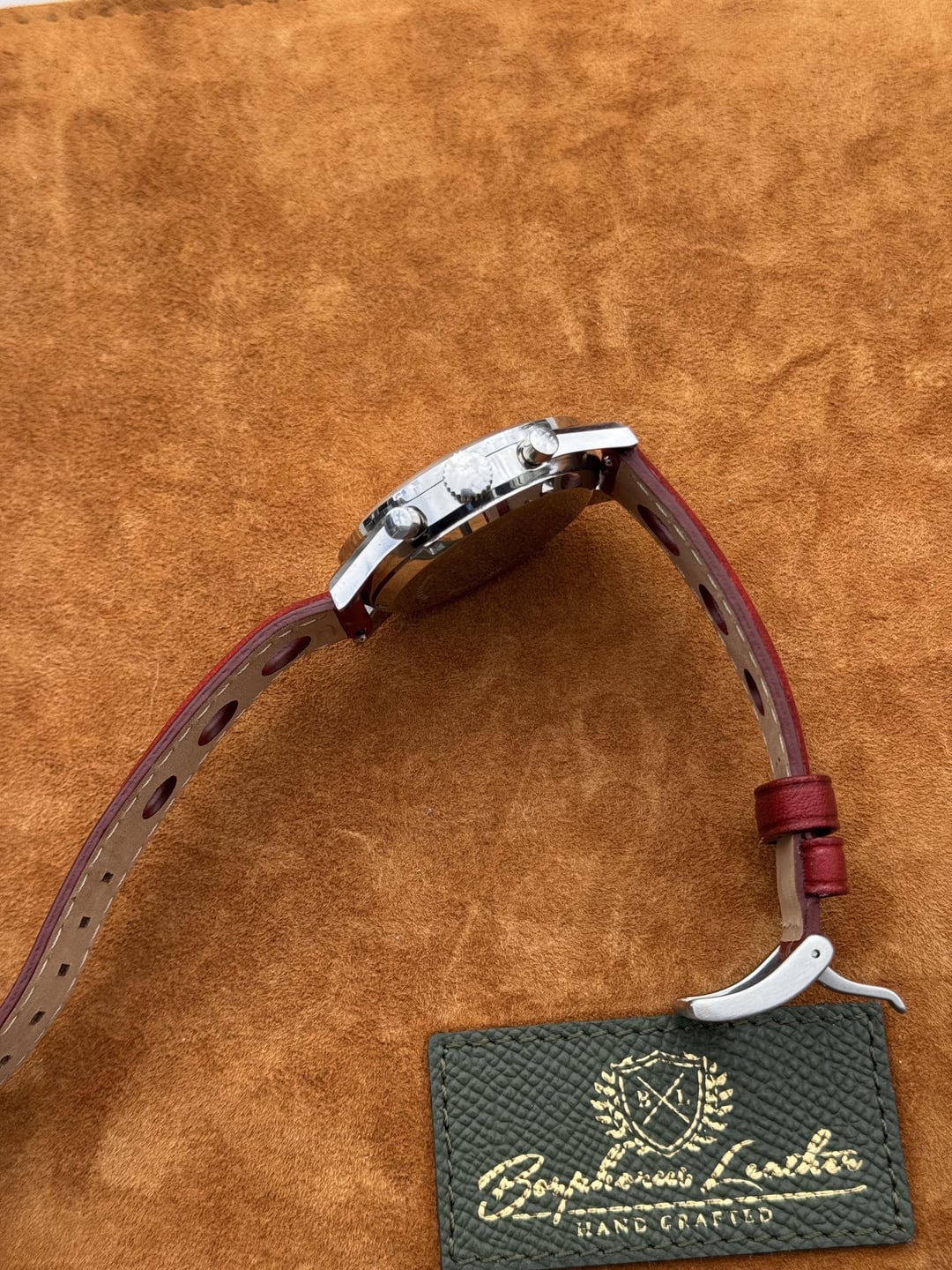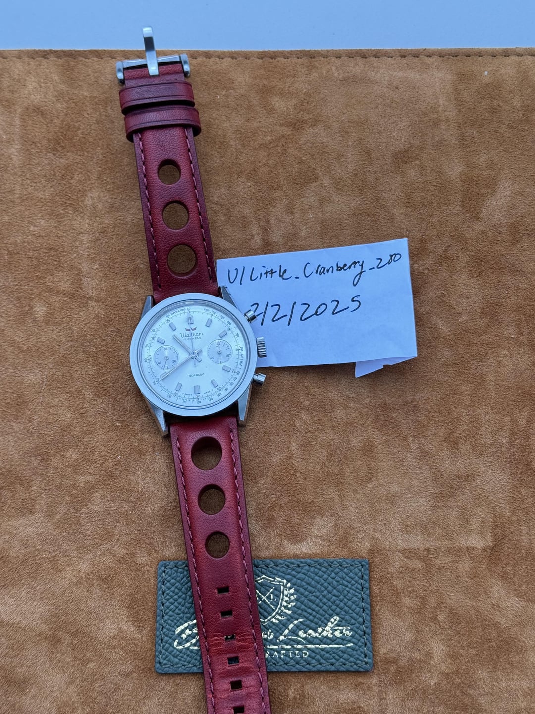 Watch Fam! US watchmaking may have gone dormant, but this relic of an era bygone proves it once knew how to craft an excellent timepiece. In excellent original condition with even lume and patina throughout, this 37mm piece is running very well, with an exceptionally smooth tactile sensation while operating the Landeron chronograph. Paired on a red Barton racing strap, this piece is ready for a new home! Offered at $600 OBRO shipped CONUS