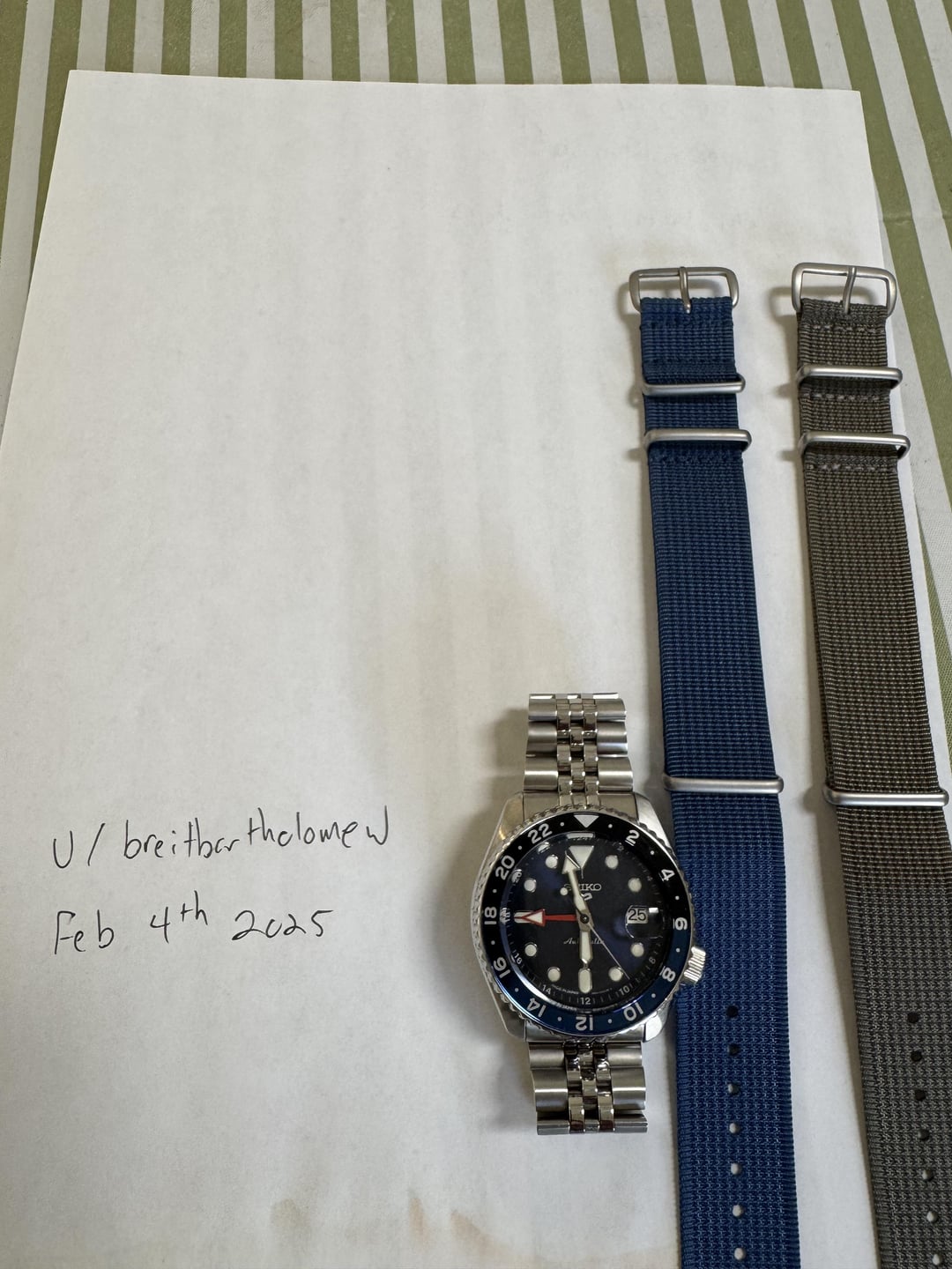 WTS - Seiko 5 GMT SSK003 Sized currently only for 6.5” wrist. Unfortunately, no extra links. Will include two brand new ribbed nato straps. Looking for $135 via Zelle shipped
