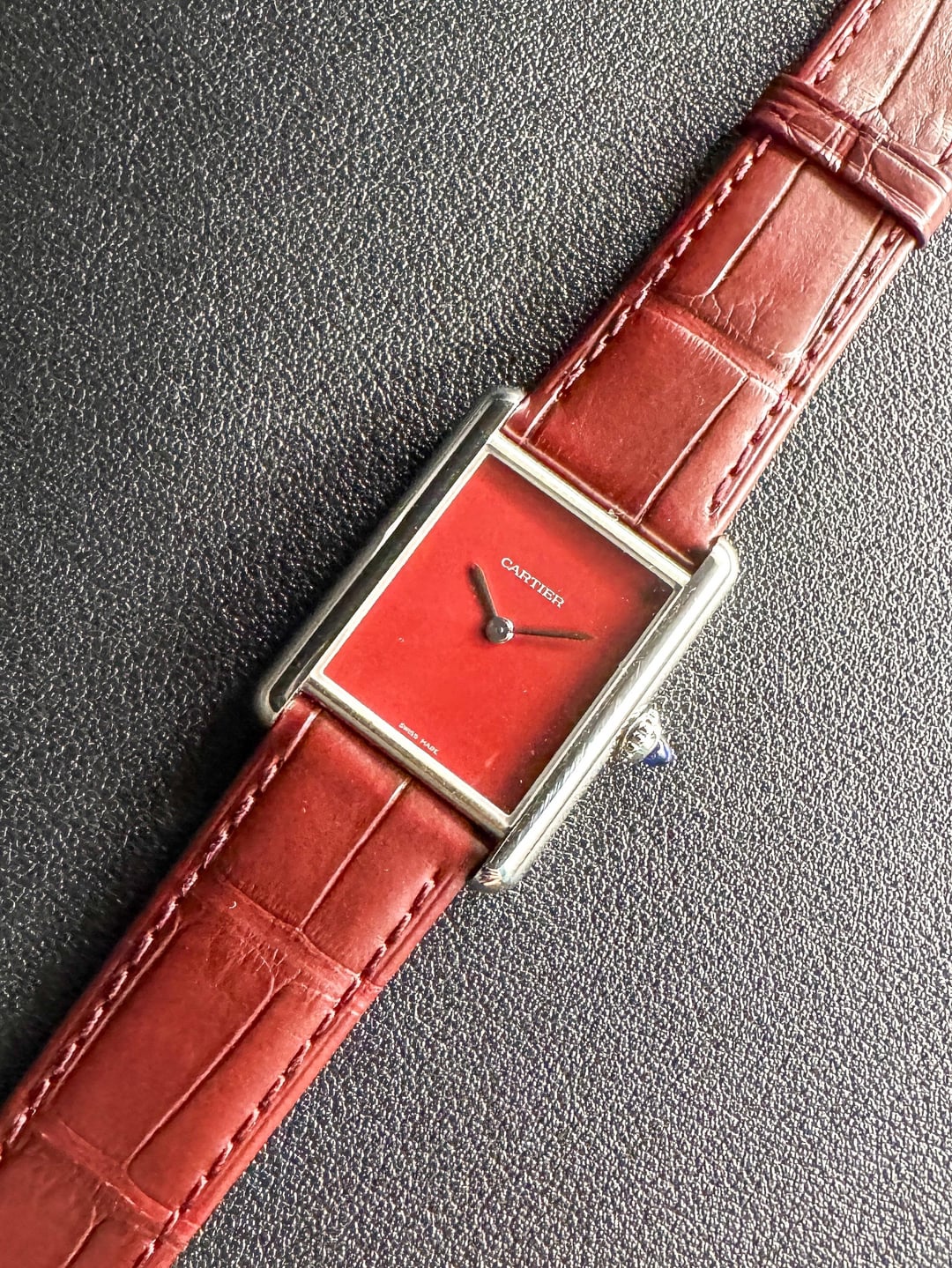 tank must large wsta0054 • Case : 25.5 by 33.7 • Dial : burgundy • Crystal : clean • Bracelet : brand new / unworn • Accessories : complete ________________ Selling as is 💰3000 shipped