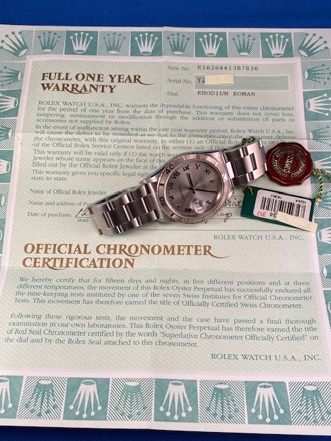 Fs: Rolex 16264 datejust turnograph thunderbird mint full hologram box waranty $6985 18