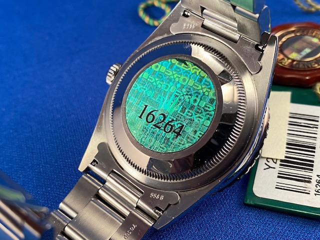 IT IS LIKE NEW WITH A FULL CASE BACK HOLOGRAM STICKER STILL IN PLACE AND IS A SINGLE OWNER WATCH.