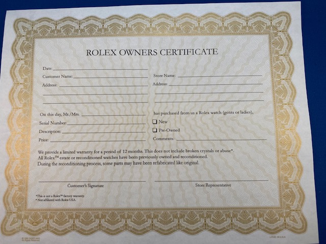 WE ARE ALSO SELLING THIS WATCH WITH OUR IN HOUSE ROLEX OWNERS CERTIFICATE AS SEEN IN THE PICTURES.