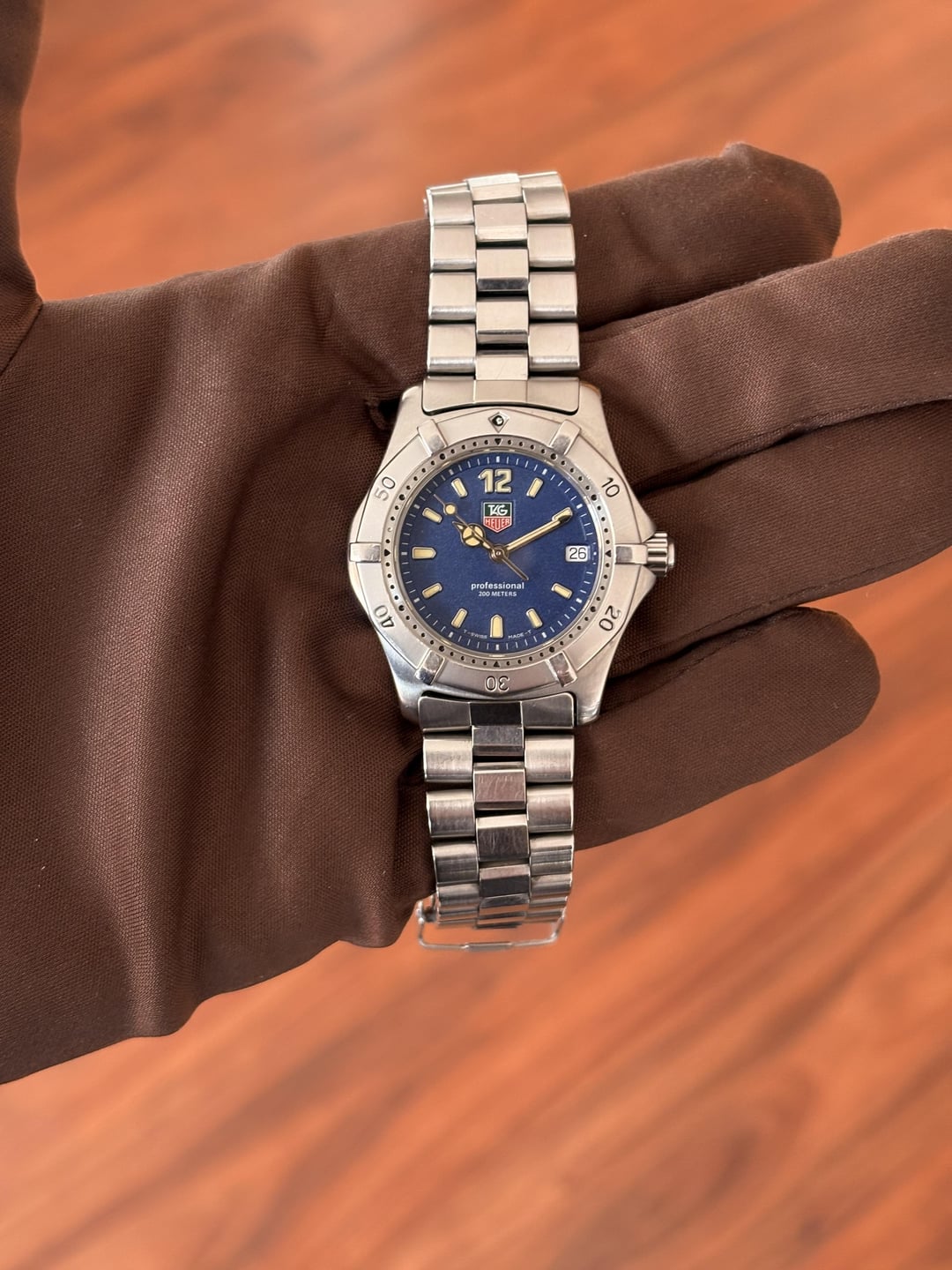 Hello everyone! For sale this TAG Heuer 2000 Professional💎‼ Ref. WK1213, good working condition, stainless steel, 34mm, quartz movement, fits a 6.9 wrist approx, comes with box and papers from 1999. Price is $499‼- Worldwide shipping included through DHL Express, customs are covered by you (Watches shipped to the USA do NOT need to pay import customs, those are covered by me), will ship from Latin America 24hrs after the deposit, takes 3 business days to arrive. Will accept Wire (ACH) or Crypto currency. Follow me on IG: [https://instagram.com/timecollectorcol?igshid=YmMyMTA2M2Y=](https://instagram.com/timecollectorcol?igshid=YmMyMTA2M2Y=) IG: TimeCollectorCol Shoot me a PM if you're interested!