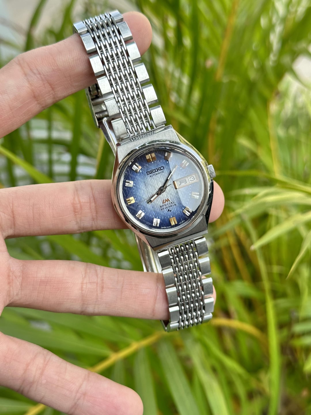 Up for sale is my Denim dial Seiko LM Special 5216-6030 with 28800 beat and was made in 1973. This LM special movement is a good improvement from the 5606 which has a crappy plastic day/date wheel and 21600 beat. This movement has a steel day/date wheel which is more durable than the plastic one. • Movement: 5216-6030, Hi-beat 28800bph, automatic with day-date complications • Production Year: May 1974 • Beautiful Denim dial, the dial color scheme is very similar to new Special edition Save The Ocean Penguin SRPG59. • Kanji/English Day-date, quickset works properly well • Crystal is free from scratches • Stainless steel, Dimensions of Case: 35 x 40mm (Excluding Crown), lug width 16mm • Performance: +10 to +15s per day, serviced May 2024 • Come with original bracelet will fit up to 7.2inch wrist. Timestamp: https://photos.google.com/share/AF1QipOgbUARJ4WqVgycDDILbe9XDOwHHNQAzcNStAgg_R-ca4JNhFqNi6ecqRD4YmODyw?key=a3J6V3BaS3QwMFVSMmpPenYzbENJb0ctbXBqOWlB Album: https://photos.google.com/share/AF1QipPVFbHKNV0UUM4avtchsAcmnzUTDgmEoTO7COfjUMuPZxkgG00G7KOtePdIXAfOUw?key=cmxTazVaYmY3QnFWRFpVaUdnd2RoTXVPNldzSTZB I’ve been selling watches in this sub years now, please check my transaction flair. I’m asking for USD 499 Net via PayPal F&F or Wise including DHL Express Worldwide shipping with tracking number. Thanks! DHL Express -> US conus, Europe, Australia : 3-5 days
