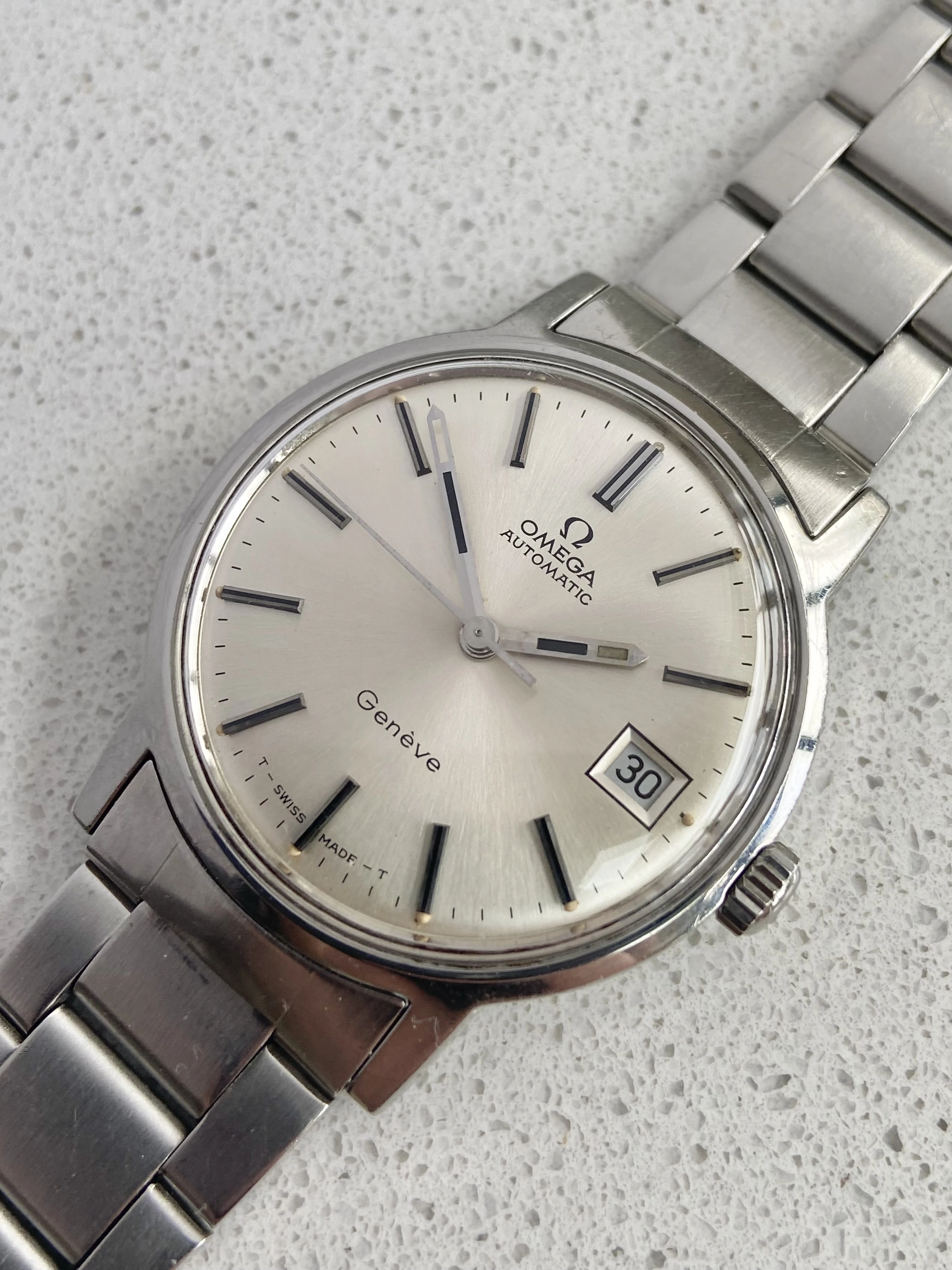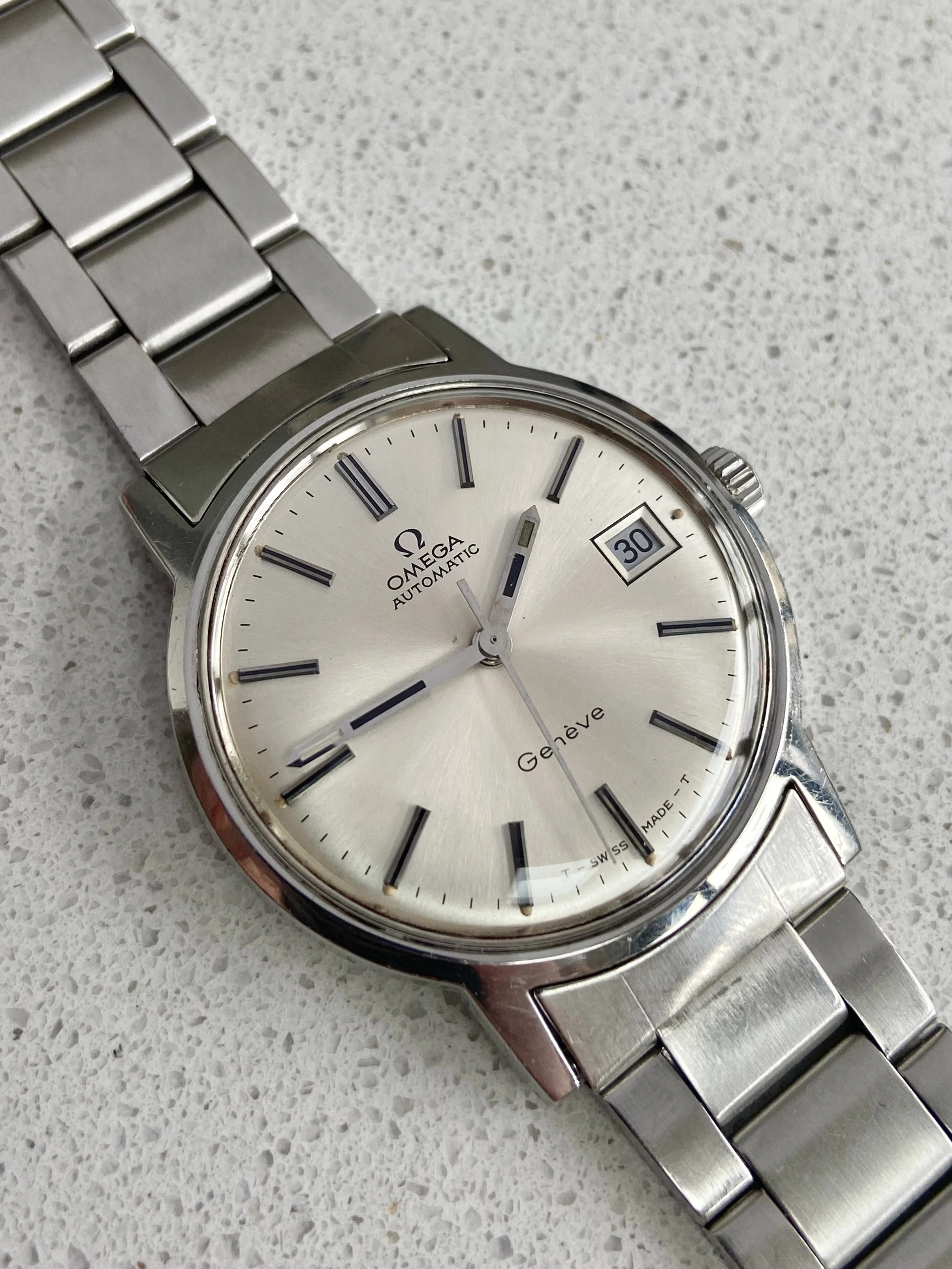 | Vintage 1971 Omega Geneve # 166098 Cal 1480 35mm YGF Steel Date Automatic Watch coinexchange267 (64608) |