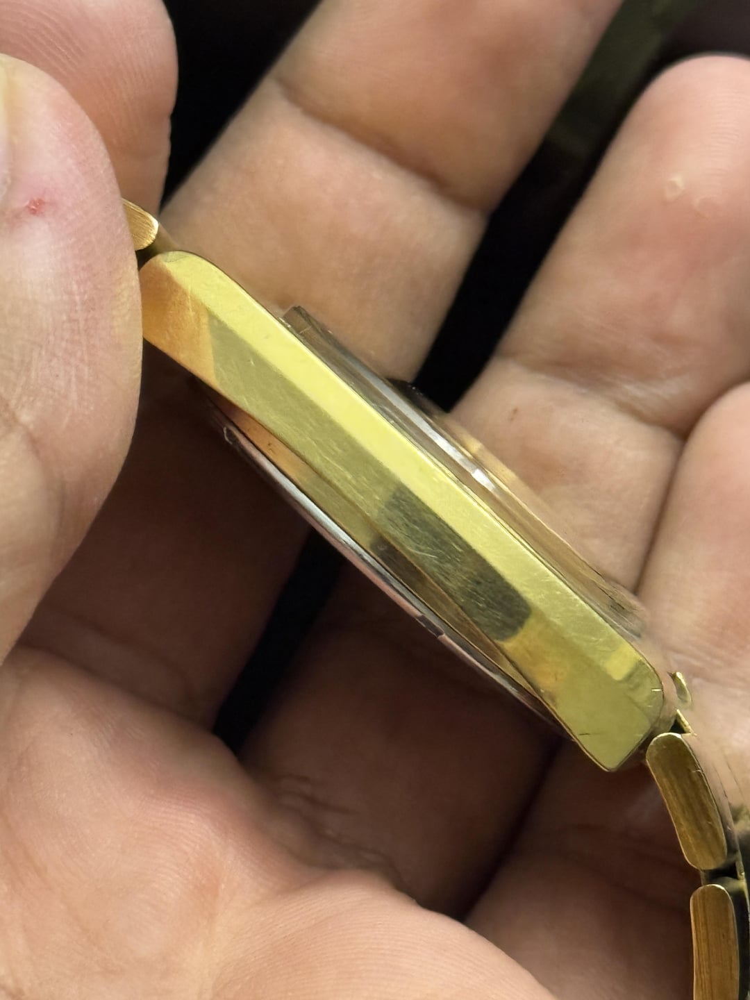 Omega Geneve Auto Ref. 166.0191 The watch features a stunning brown green gradient dial, in a gold plated case that measures 36x43mm. The watch is in very good condition for its age. The gold plating is all intact and there are only light hairlines visible upon close inspection. Powered by the calibre 1012 automatic. Runs and keeps time well. Unknown service history. Price: Reduced to 800$ via wise, wire , or usdt. Shipped via fedex.
